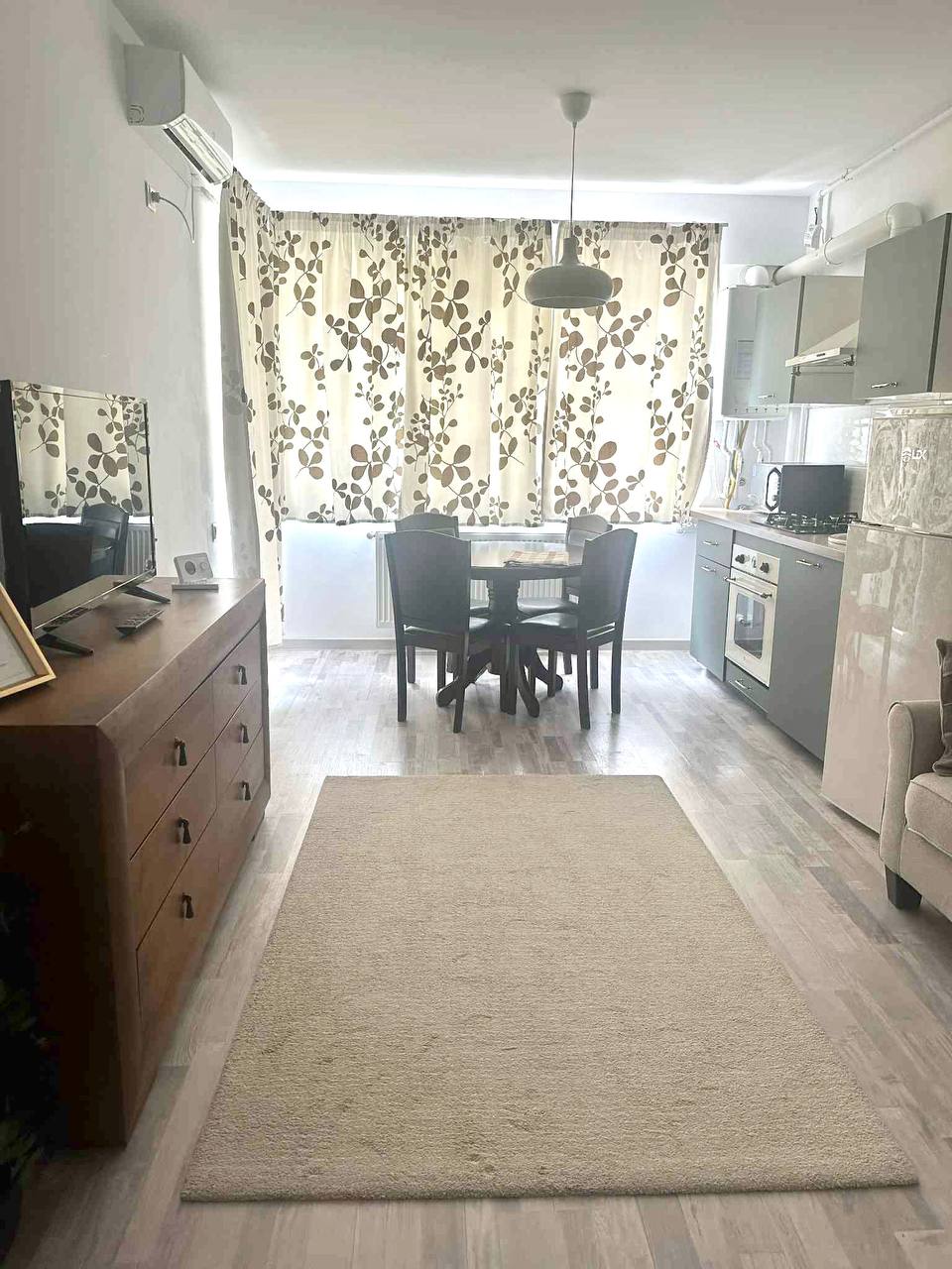 In der Wohnanlage Rotar Park 2 (geschlossene Anlage) ist ein Studio-Apartment mit separatem Zimmer und Balkon zu vermieten. Das Sofa ist nicht ausziehbar. Das Bett ist ein Doppelbett. Es gibt eine separate Heizung, Klimaanlage, Mikrowelle und einen Fernseher. 📺