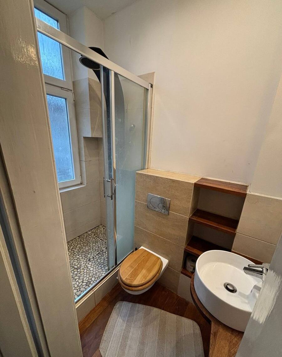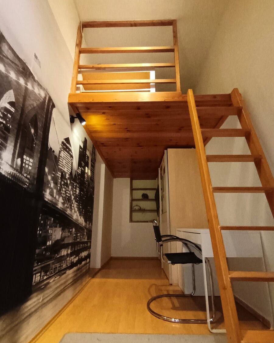 🏠 Aufteilung: – Eingangsbereich mit großem Einbauschrank – Massivholzküche mit Einbaugeräten – Badezimmer mit Dusche und WC – Durchgangswohnzimmer – zwei separate Schlafzimmer mit Galerien