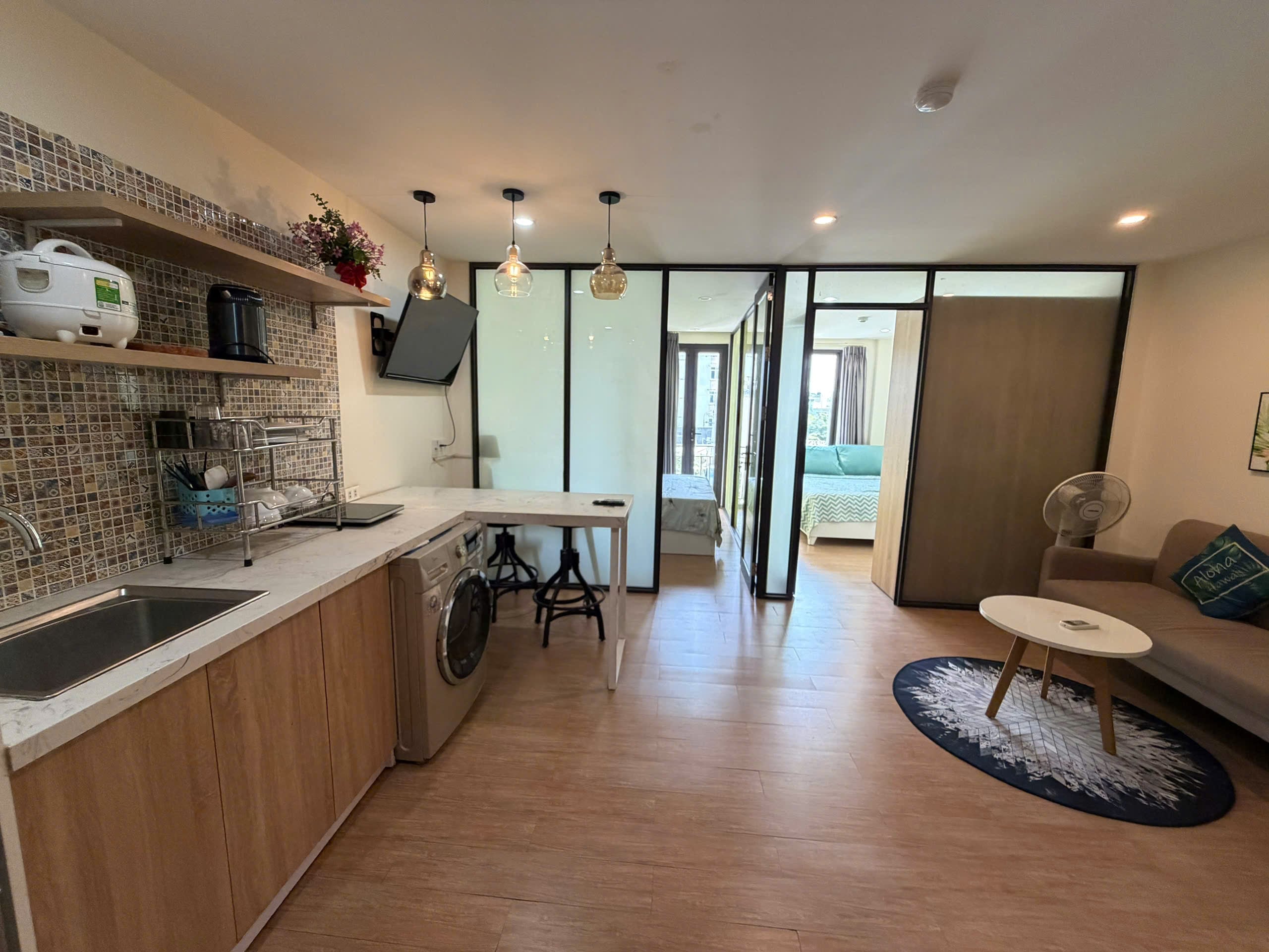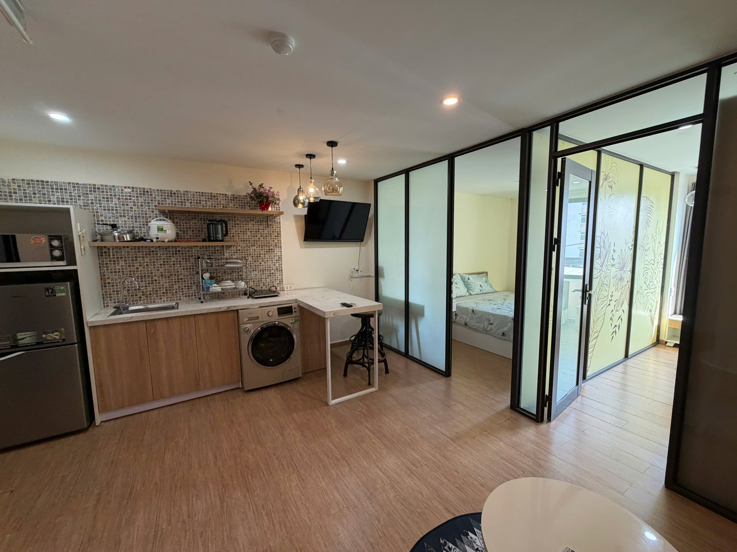 Entdecken Sie ein geräumiges und voll ausgestattetes 2-Zimmer-Appartement in der Nguyen Xuan Khoat Straße. Entworfen mit einer modernen Ästhetik und klugen funktionalen Trennwänden, bietet dieses Zuhause ultimativen Komfort im Herzen des Bezirks Son Tra.
