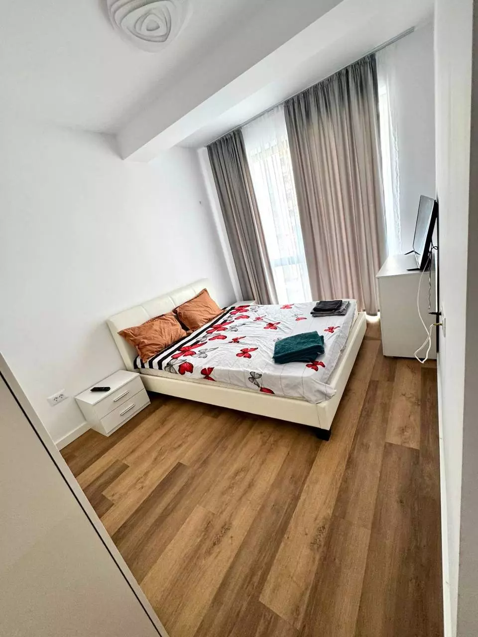 Zu vermieten im Zentrum von Bukarest: eine schöne 2-Zimmer-Wohnung mit separater Küche und Balkon. Ein Doppelbett (160 x 2 m) und ein Doppelschlafsofa sind vorhanden. Die Wohnung ist ausgestattet. Das Haus ist neu.