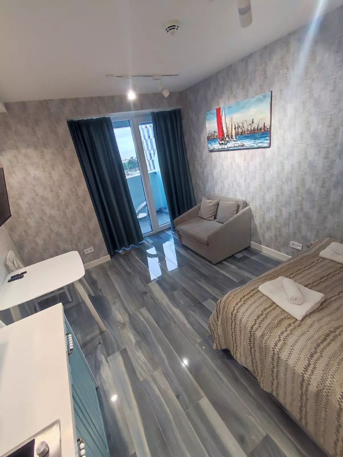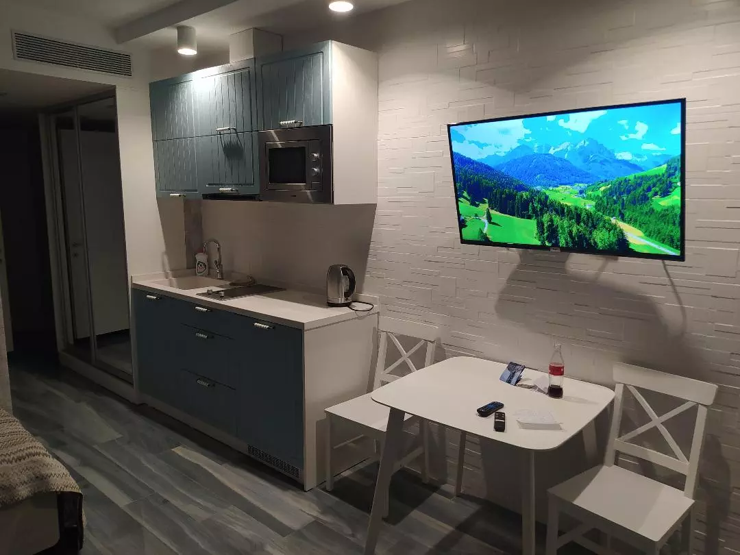 Langzeitmiete: Studio-Apartment, 29 m vom Alliance Palace entfernt. Direkt am Strand, mit Promenade, Brunnen und Otium Casino im Courtyard by Marriott Hotel.