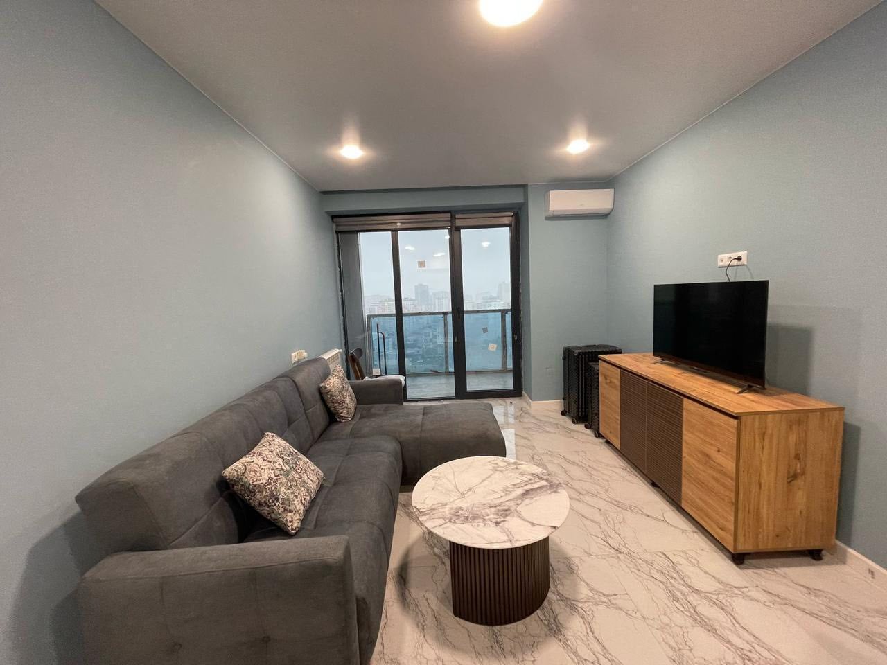 For rent a fully furnished apartment of 55 sq.m. on the 21st floor in the tower of calligraphy in Batumi.close to carrefour and the sea.