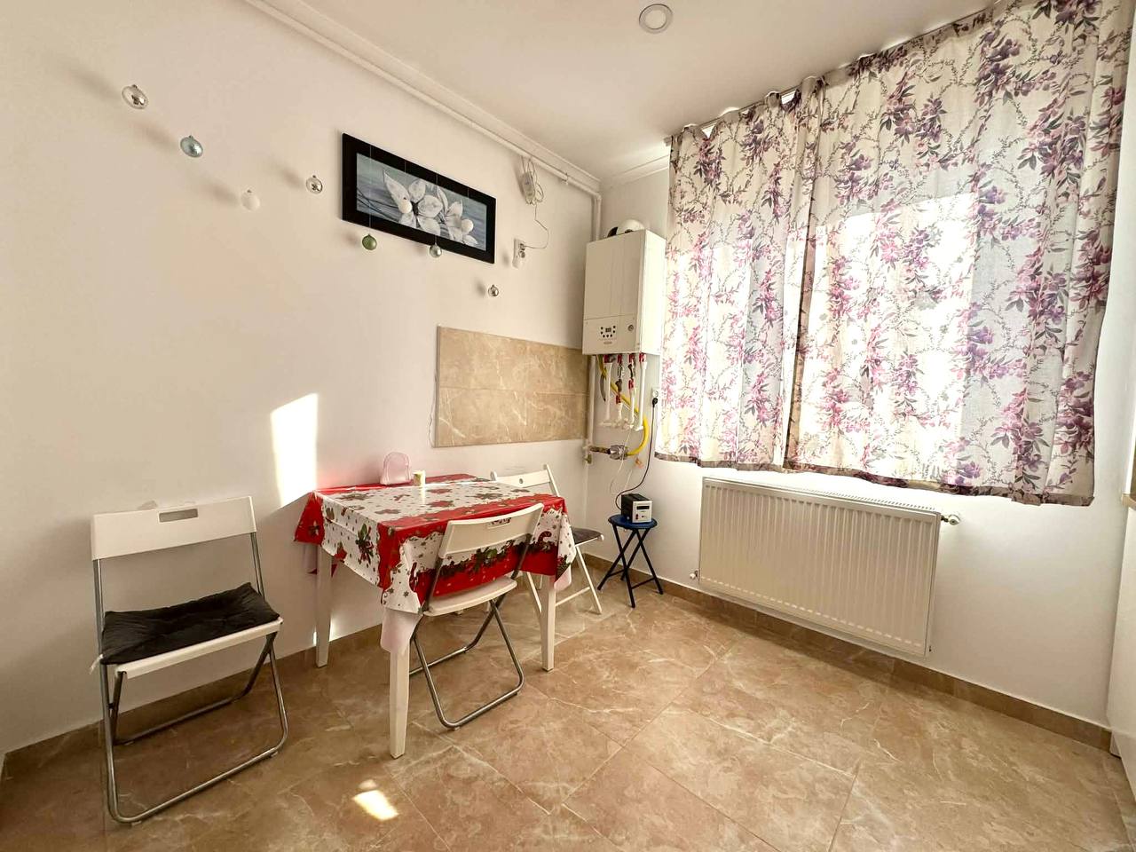 A two-room apartment with a separate kitchen and balcony is for rent in Bucharest. It sleeps three.