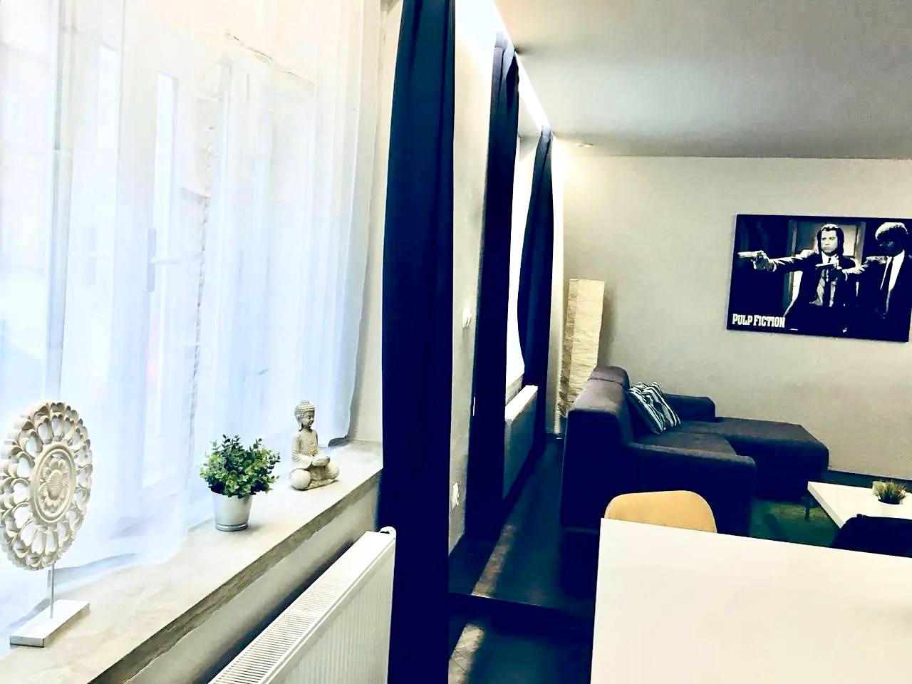 Bright, fully furnished apartment, 1st floor, after renovation. 2 bedrooms, living room with kitchenette, bathroom with shower and bathtub, basement ~5 m².
