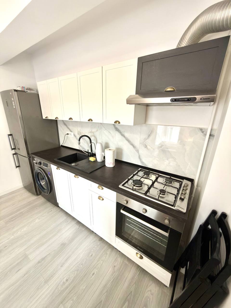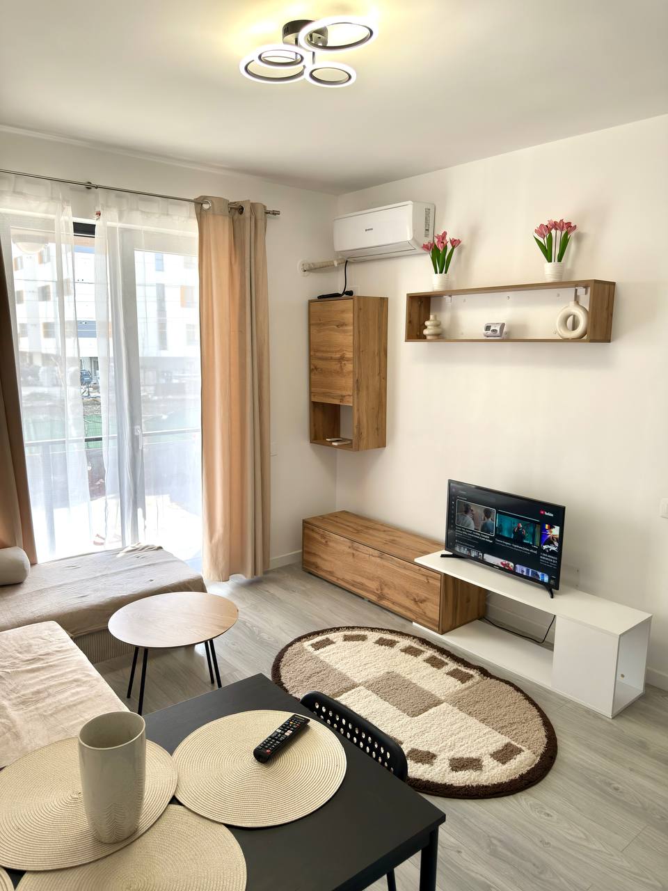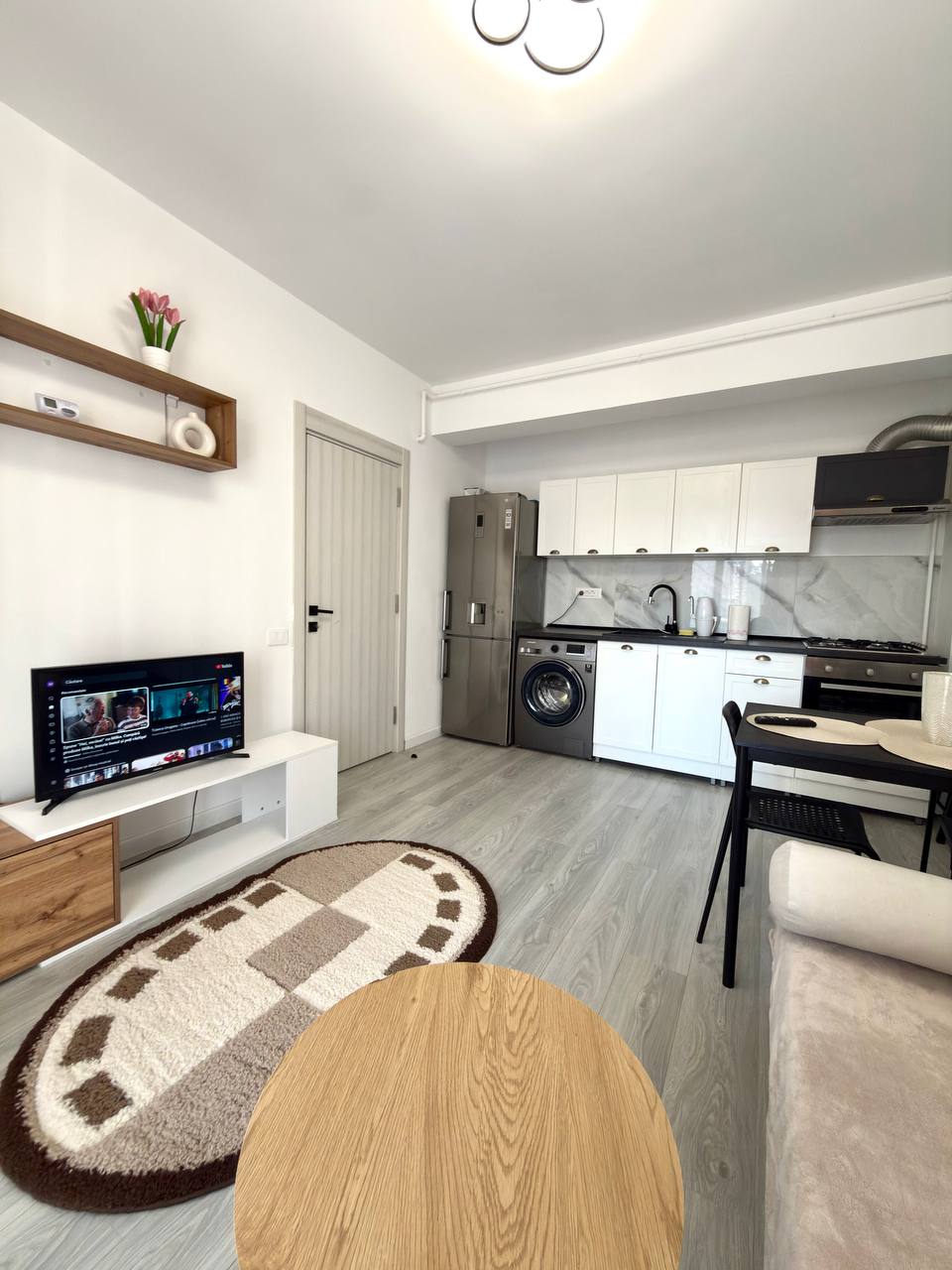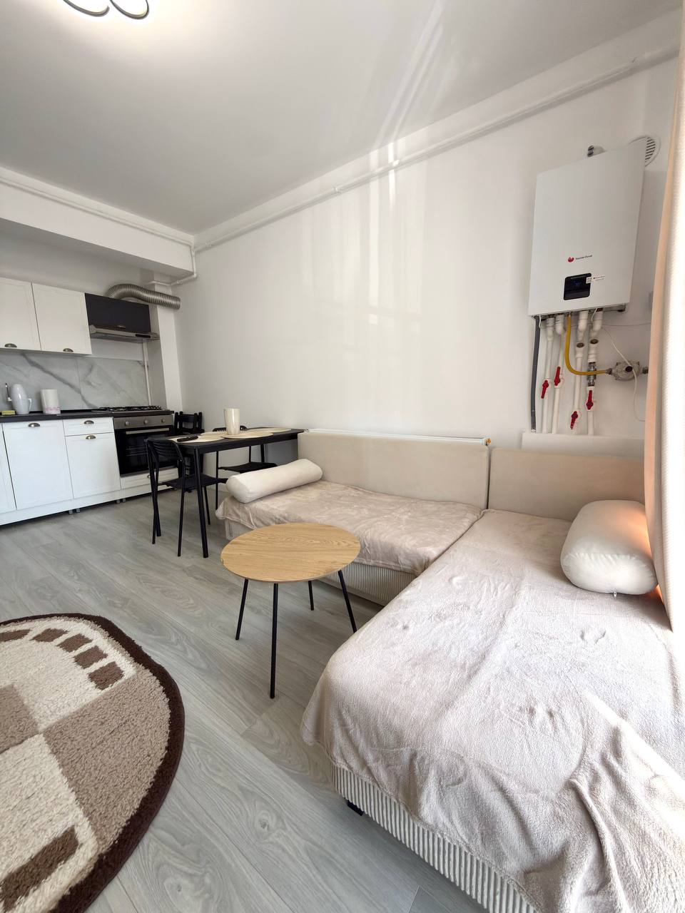 Fresh kitchen studio with a separate room for rent. 42 square meters. Double bed and sofa bed. Floor-to-ceiling windows. There is a balcony. The building is new, built in 2024. There is air conditioning, smart Tv 📺, bedding, minimal dishes, drying rack.