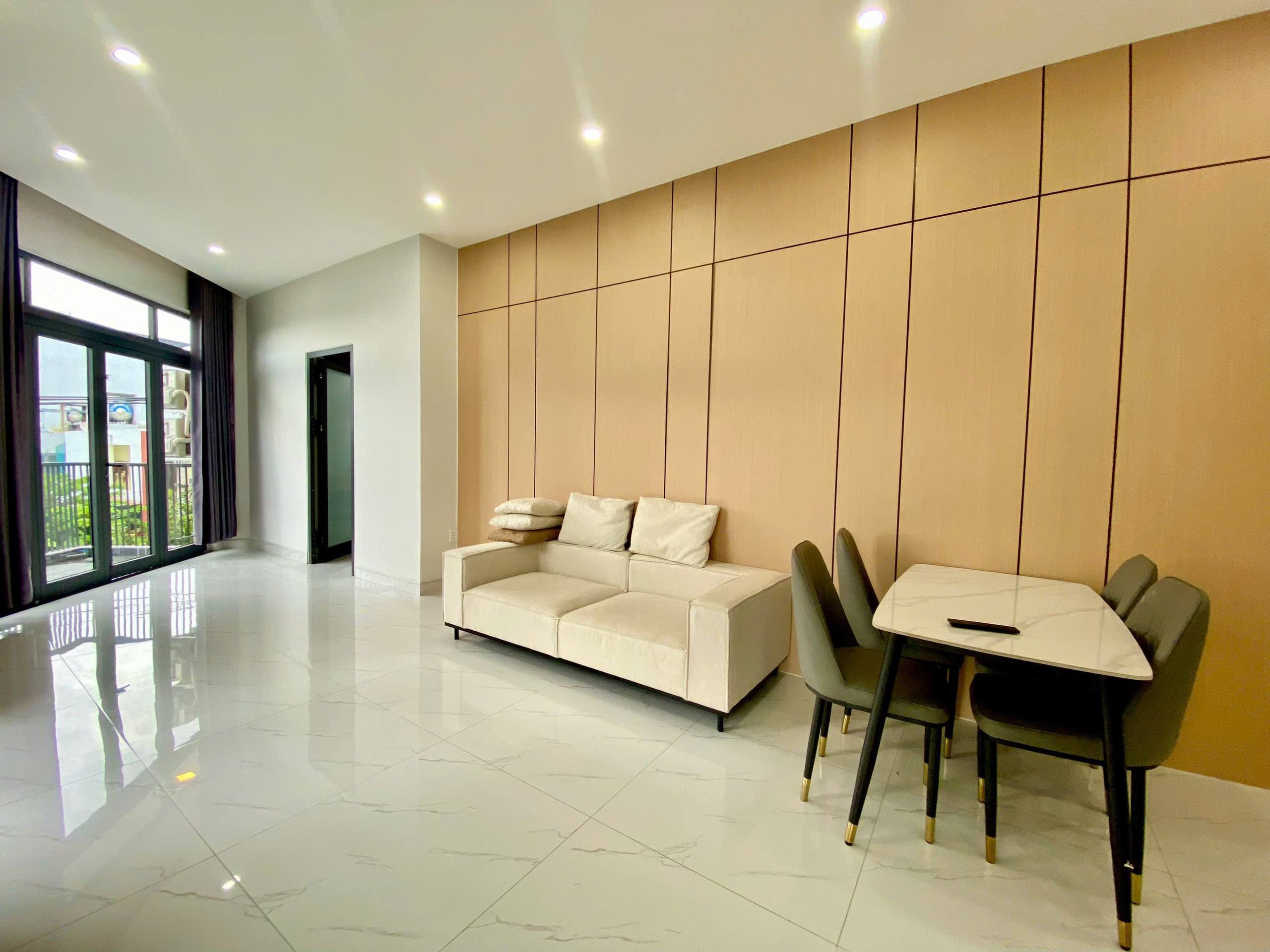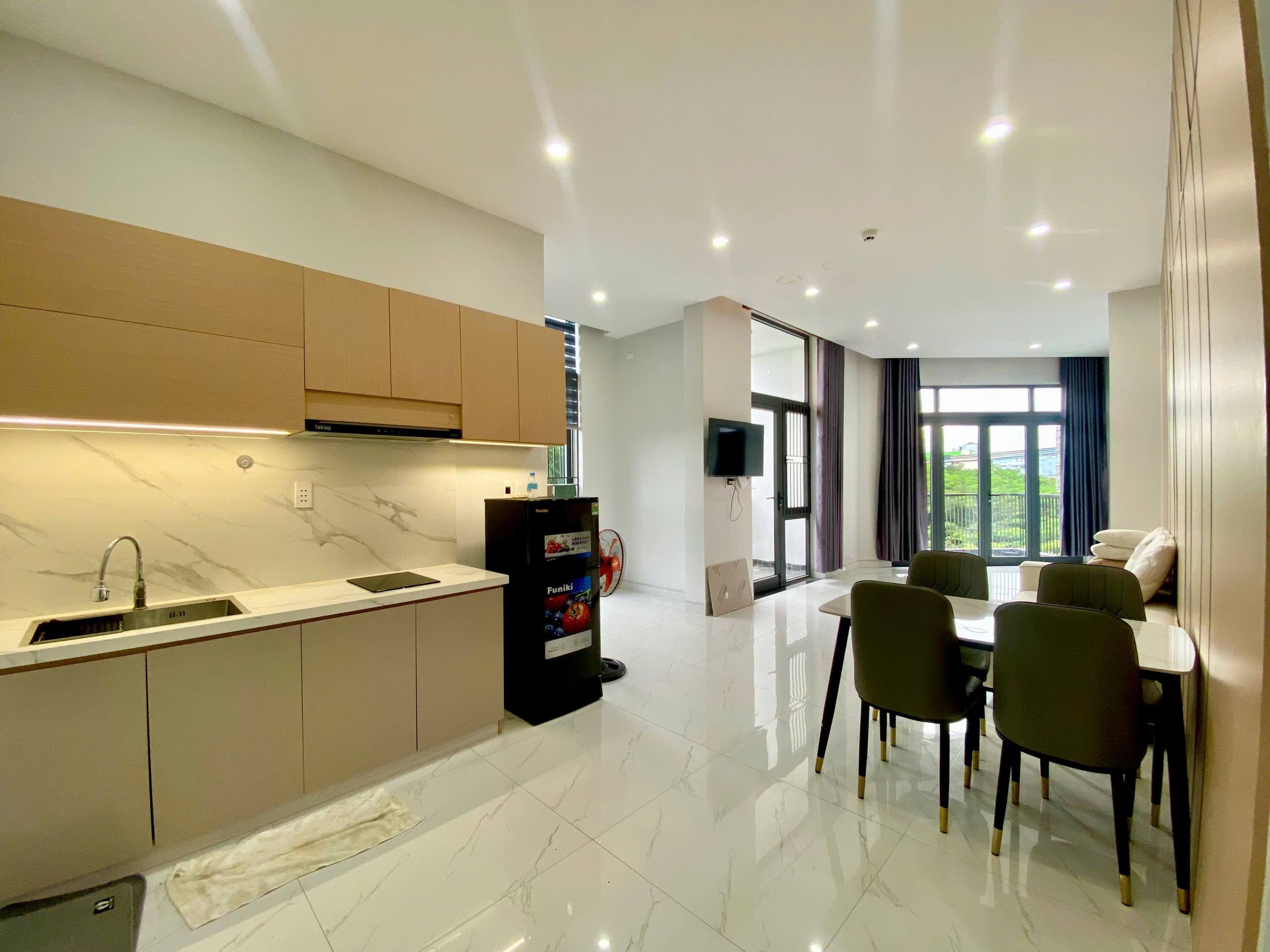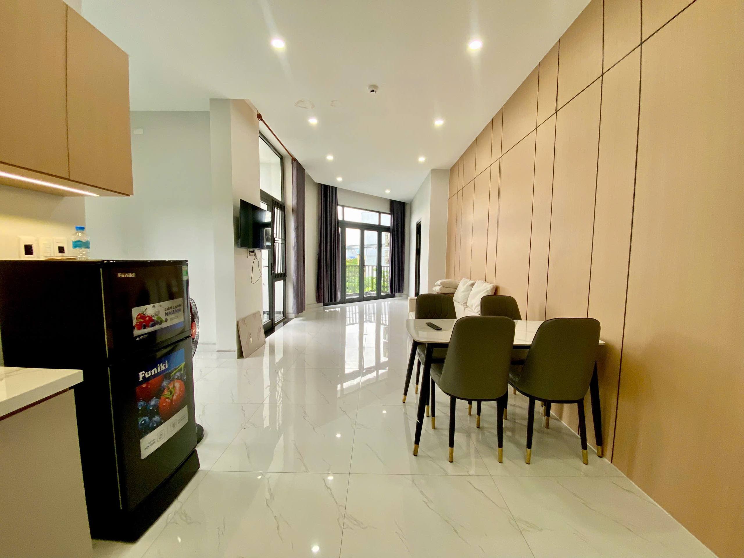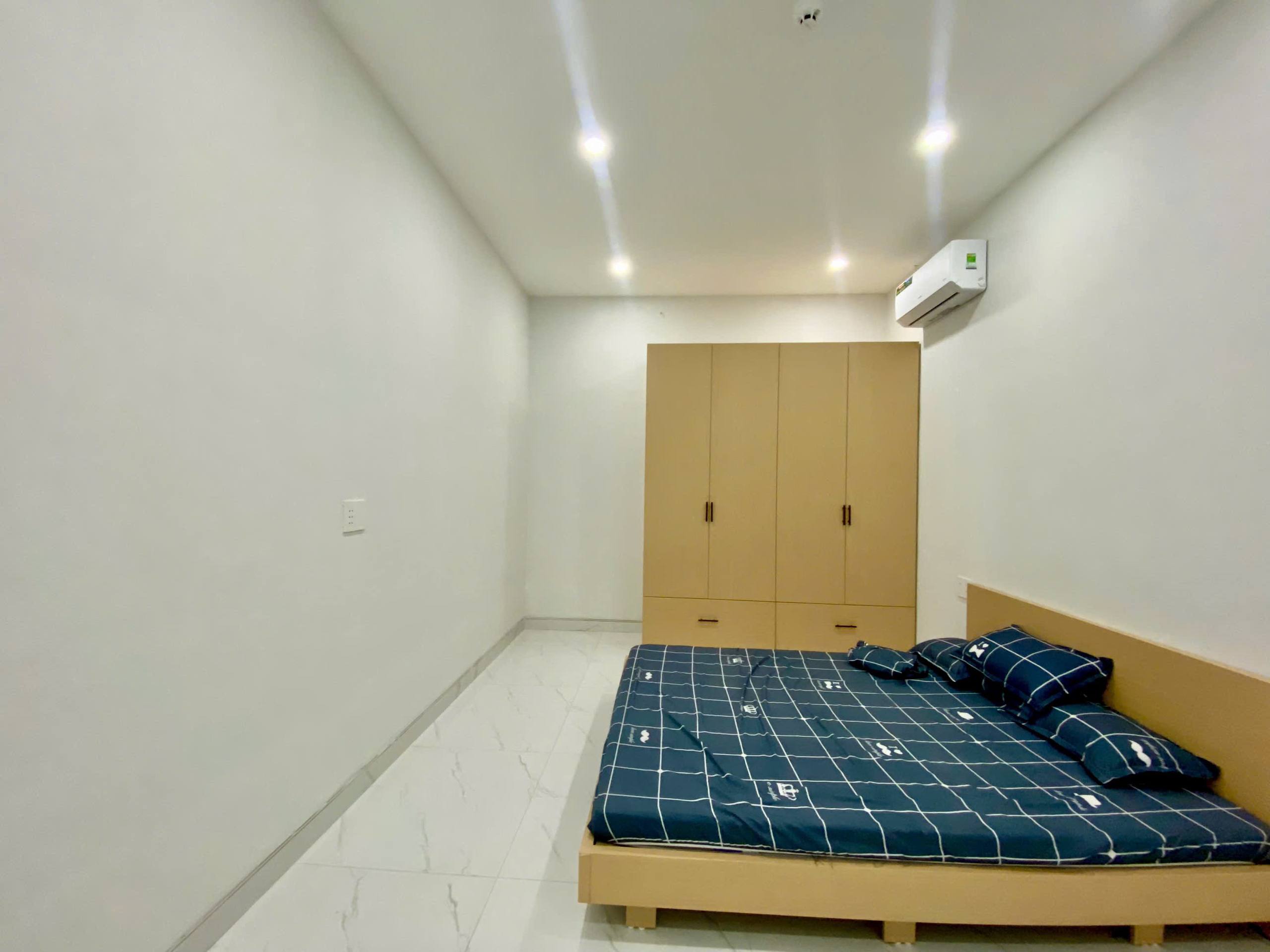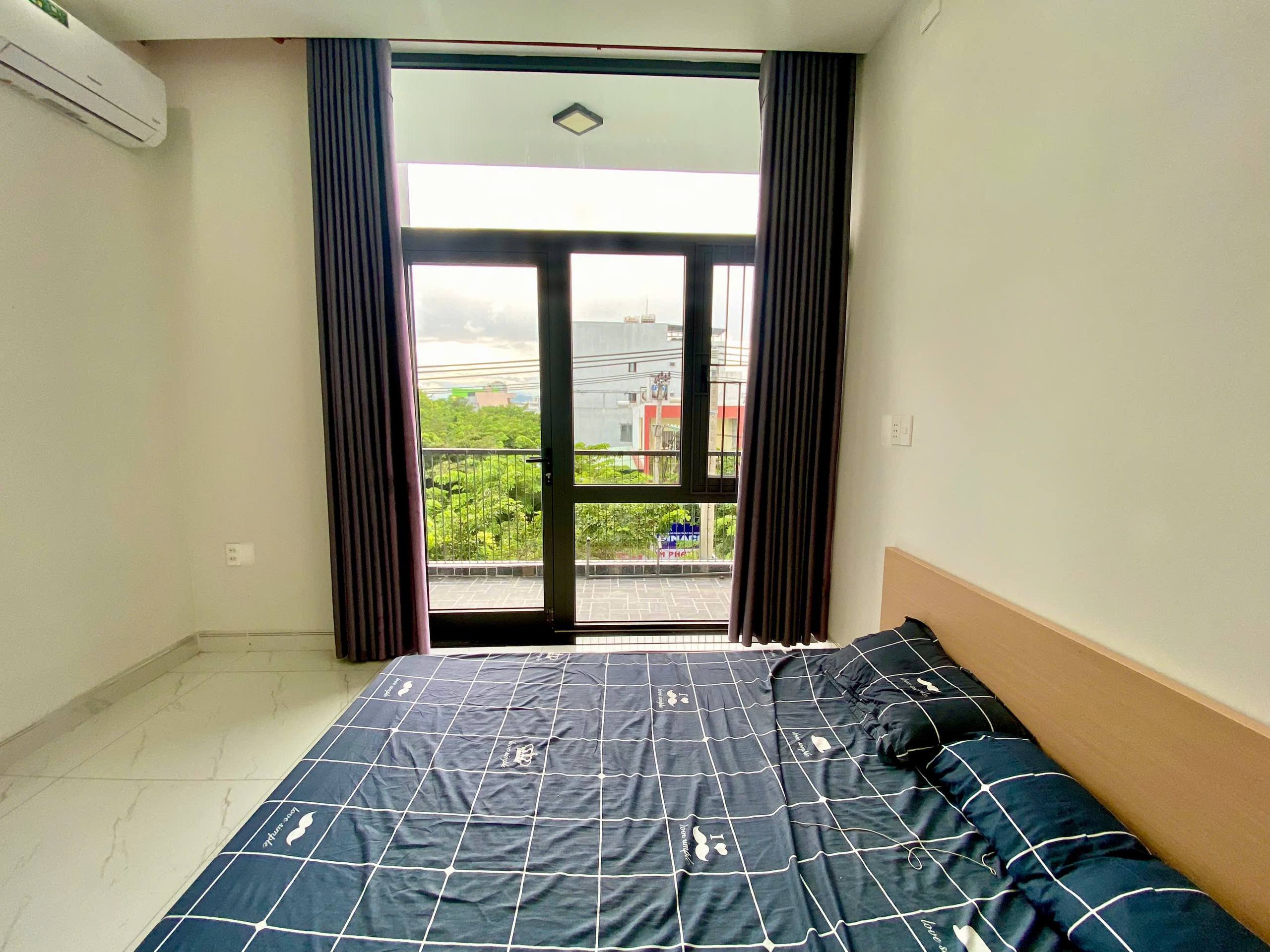 The apartment is furnished and features a balcony, as well as essential appliances including a air conditioning, a refrigerator, and more.