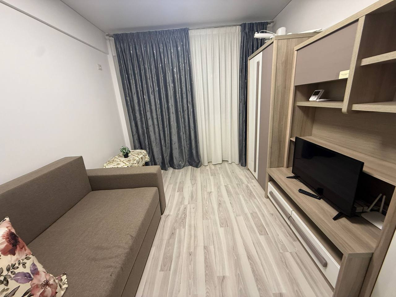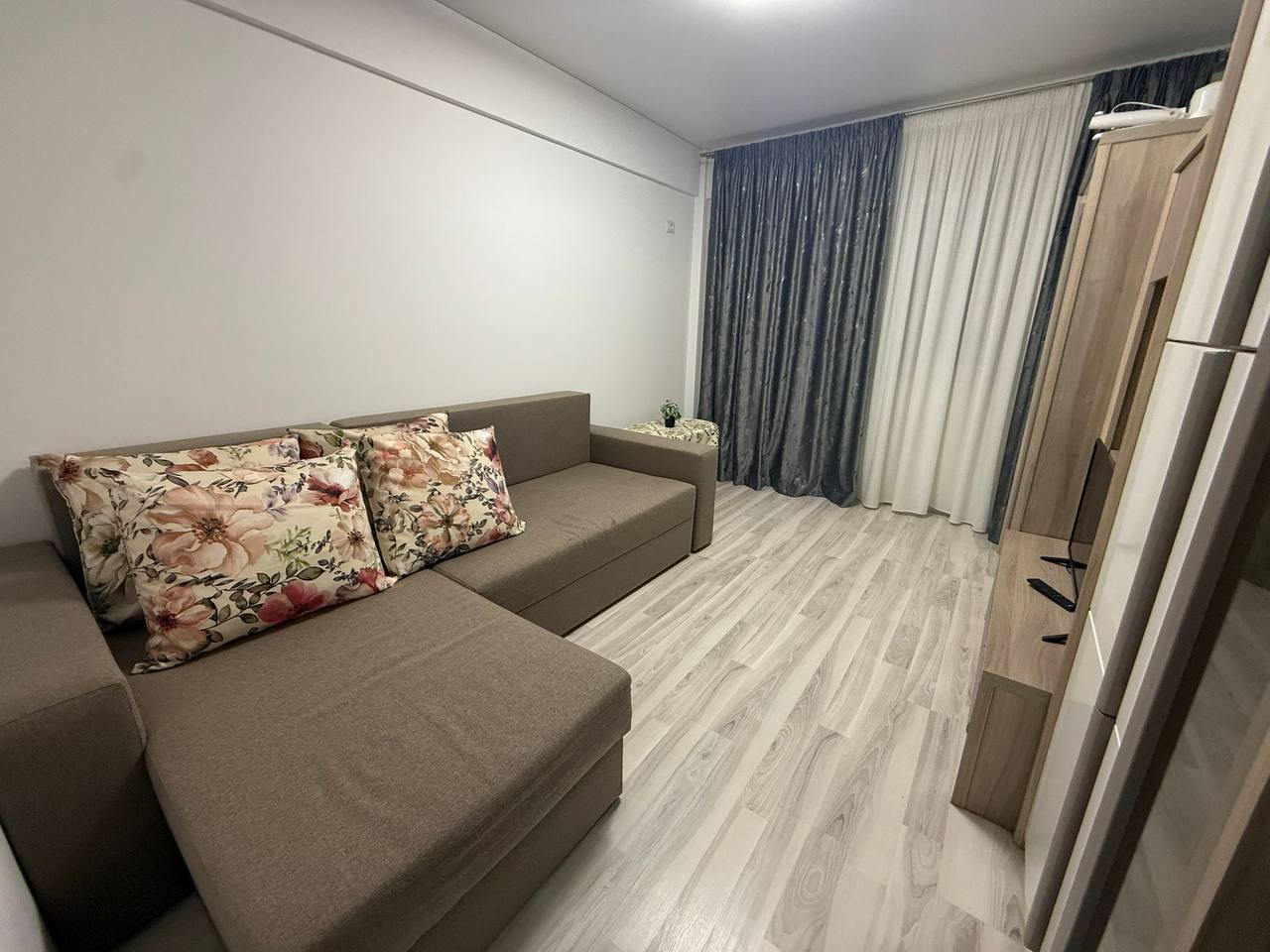 A new 1-room apartment for rent with a separate kitchen and balcony in Bucharest. First rental. Double sofa bed. Autonomous heating. There is an air conditioner, Smart TV 📺, microwave oven. Private parking already included in the price.