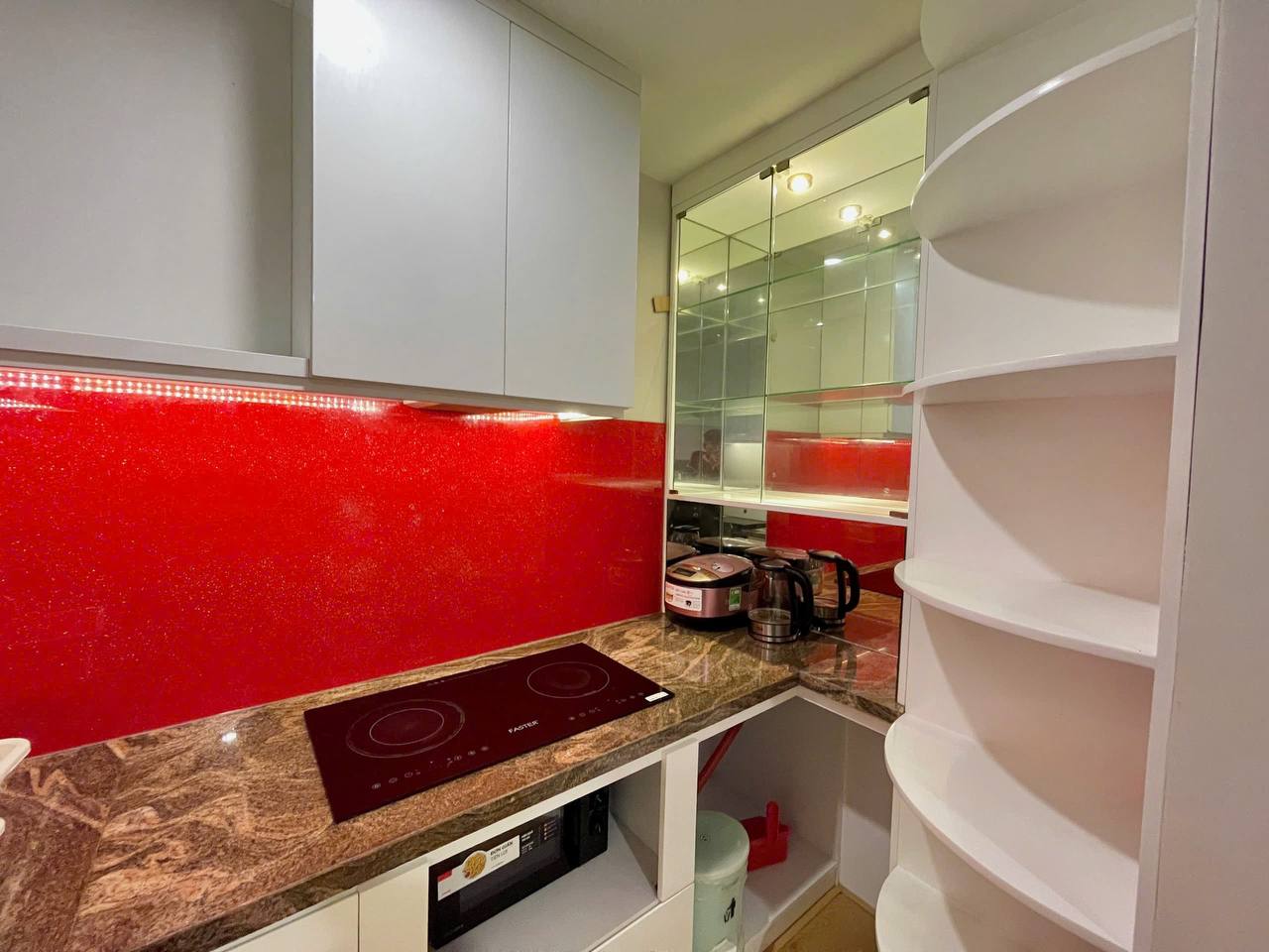 • Fully furnished to a high standard — modern, luxurious design with warm lighting