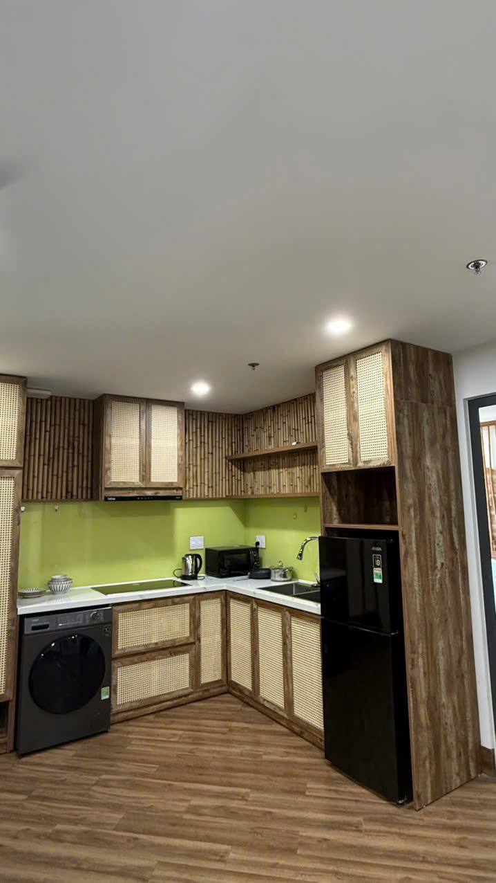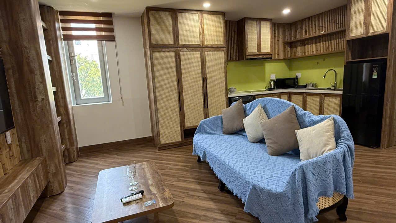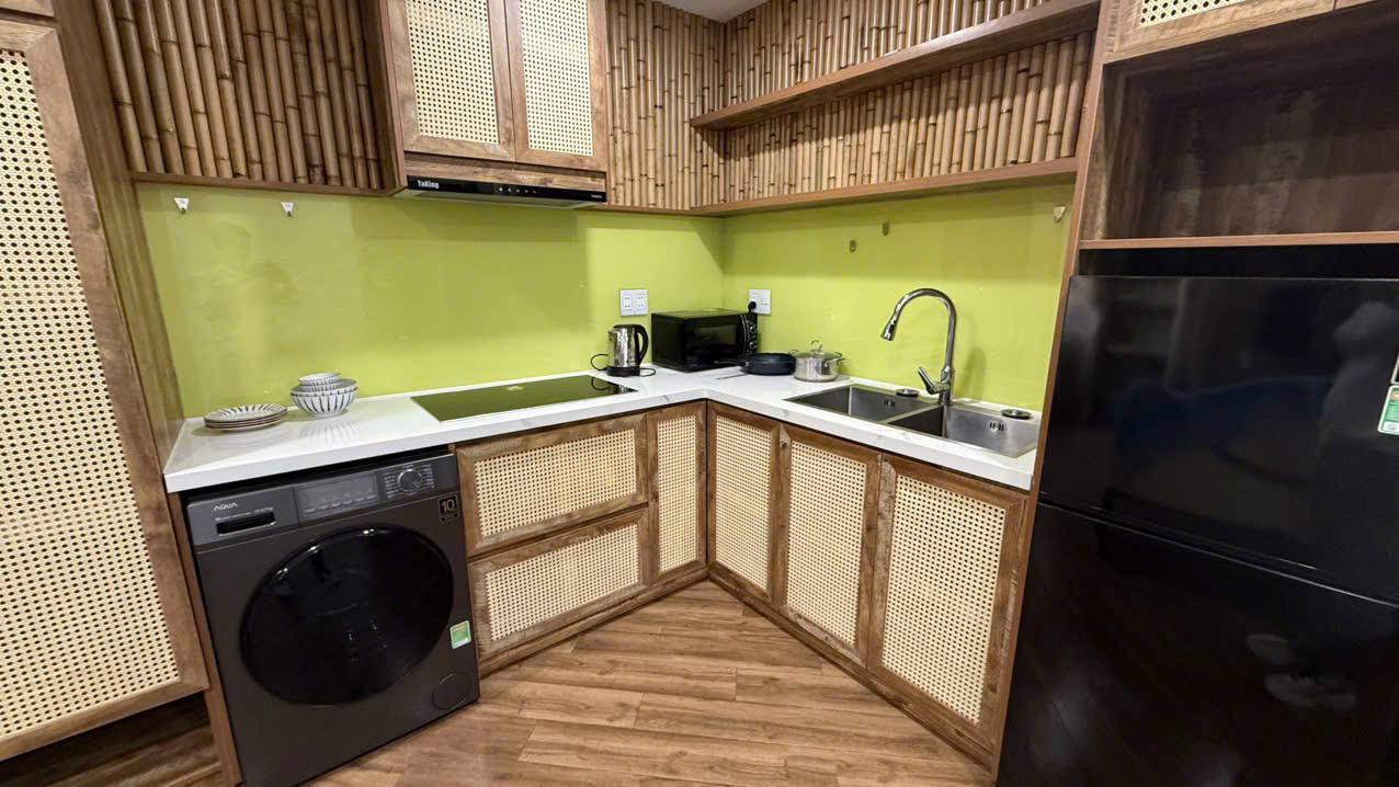 Cozy apartment is furnished and features essential appliances including a washing machine, air conditioning, a refrigerator, and more.