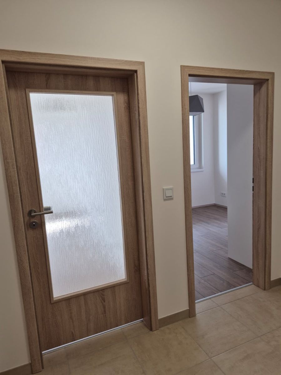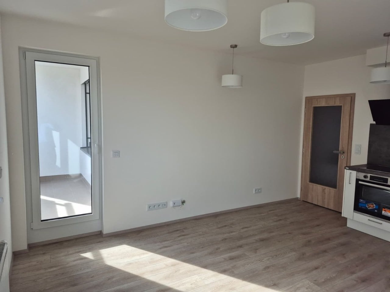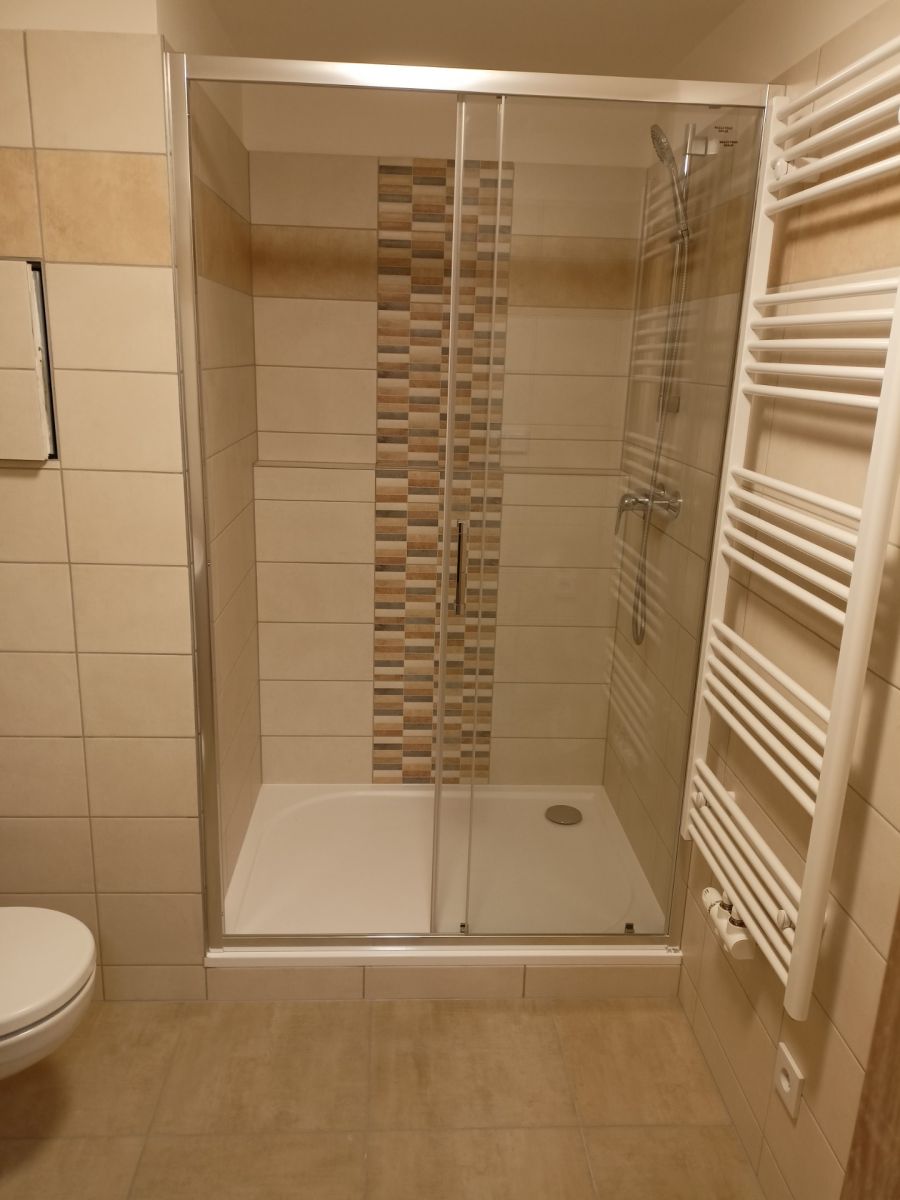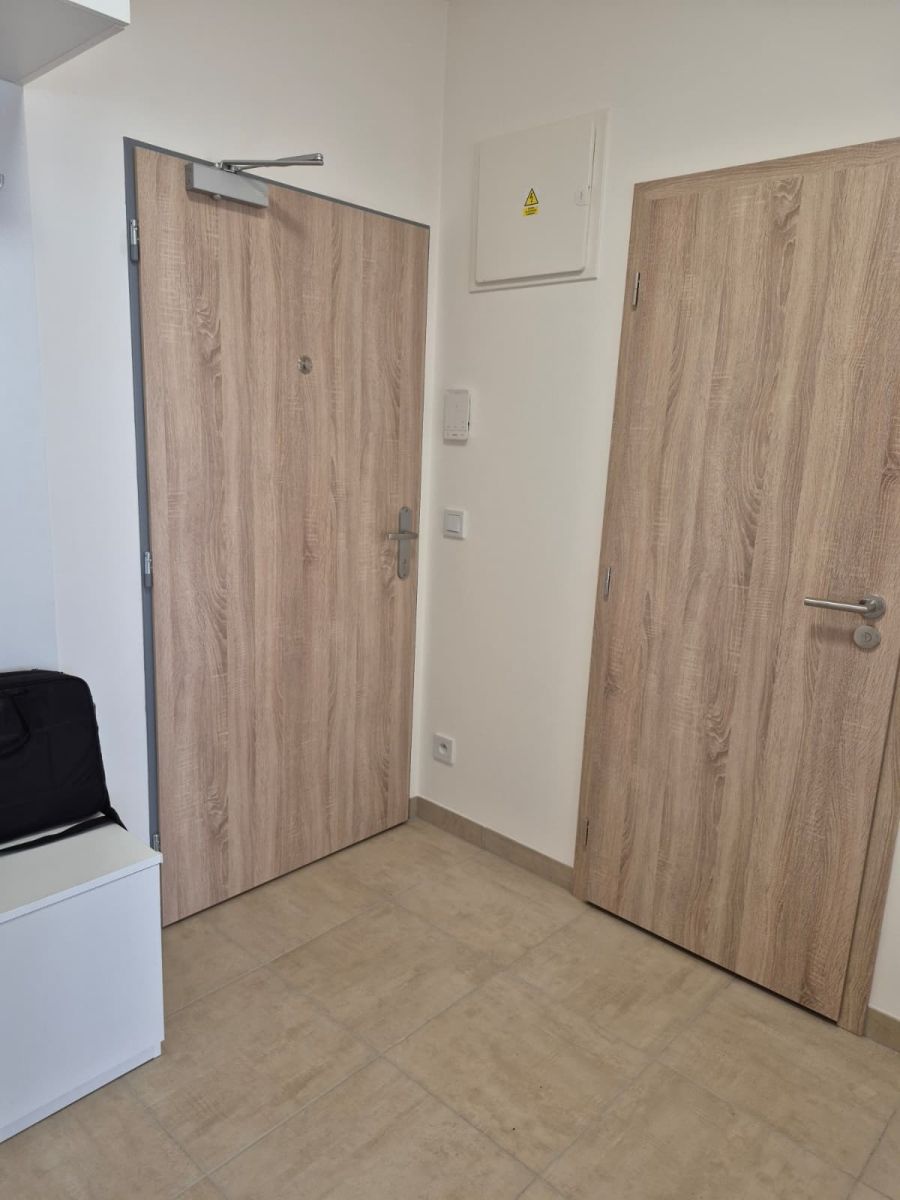 Modern 2+kk apartment in a new building with an elevator. Partially furnished: kitchen with built-in appliances (dishwasher, oven, induction cooktop, extractor hood), refrigerator, washing machine, built-in wardrobes.