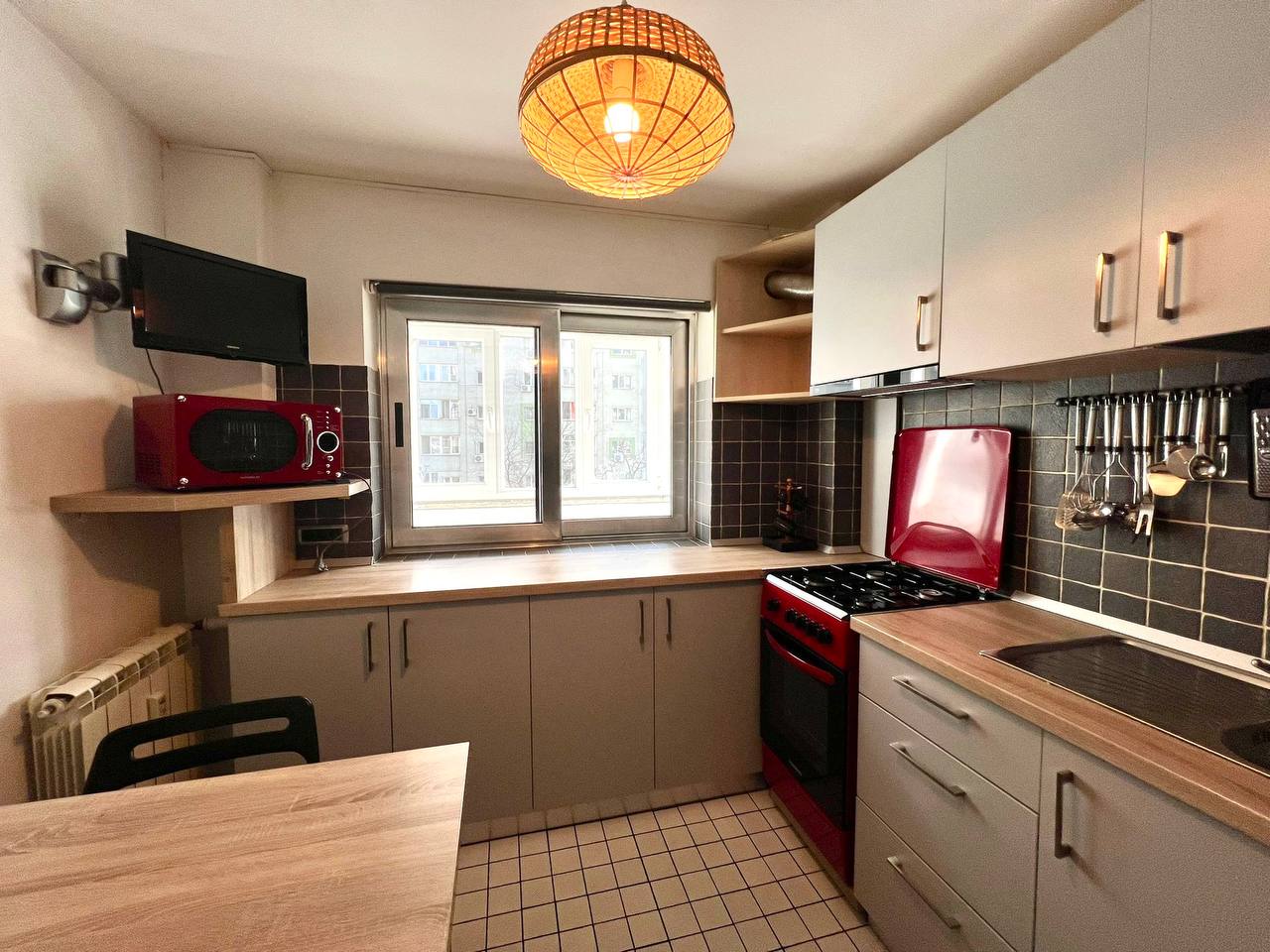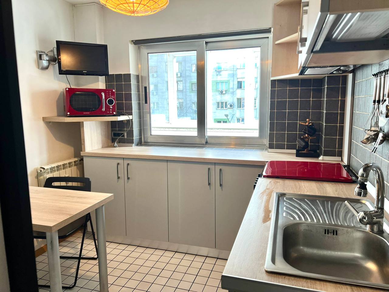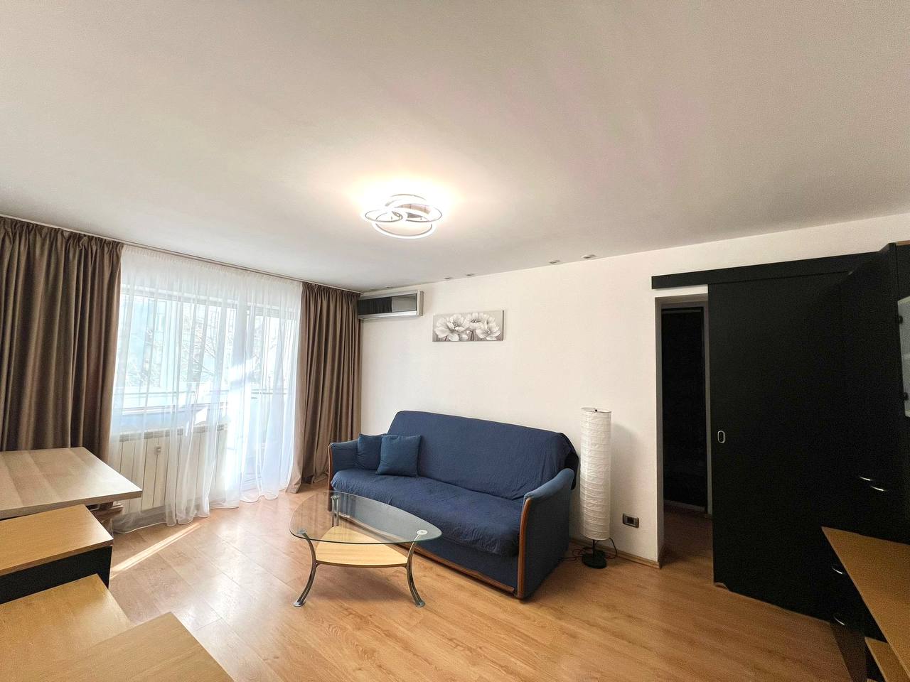 For rent in the center of Bucharest, a two-room apartment with a separate kitchen and a balcony. Double bed 160* by 2 meters and a double sofa bed. Apartment area 58 m². Fully equipped: dishes, bedding, air conditioner, smart TV 📺, vacuum cleaner.