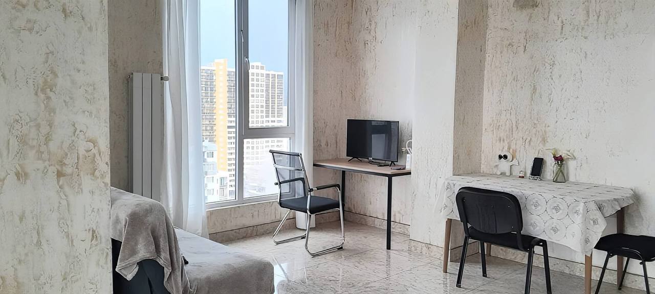 ✔️ 75 m² ✔️ 20th floor ✔️ 2 bedrooms + living room ✔️ Central heating ✔️ Air conditioning ✔️ Oven, microwave ✔️ Washer and dryer ✔️ Equipped workspace ✔️ Large balcony with a view