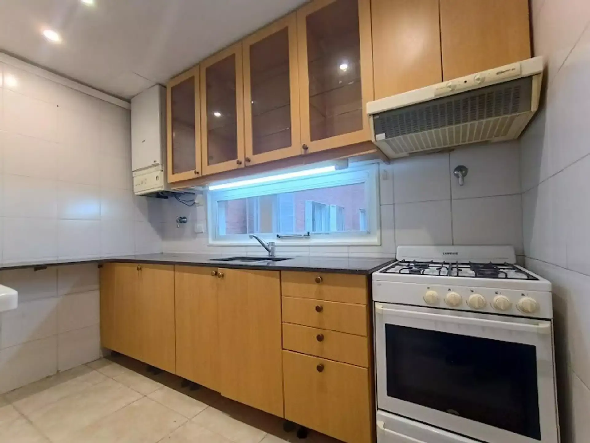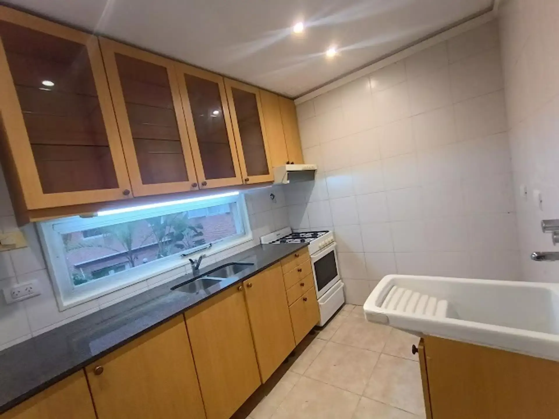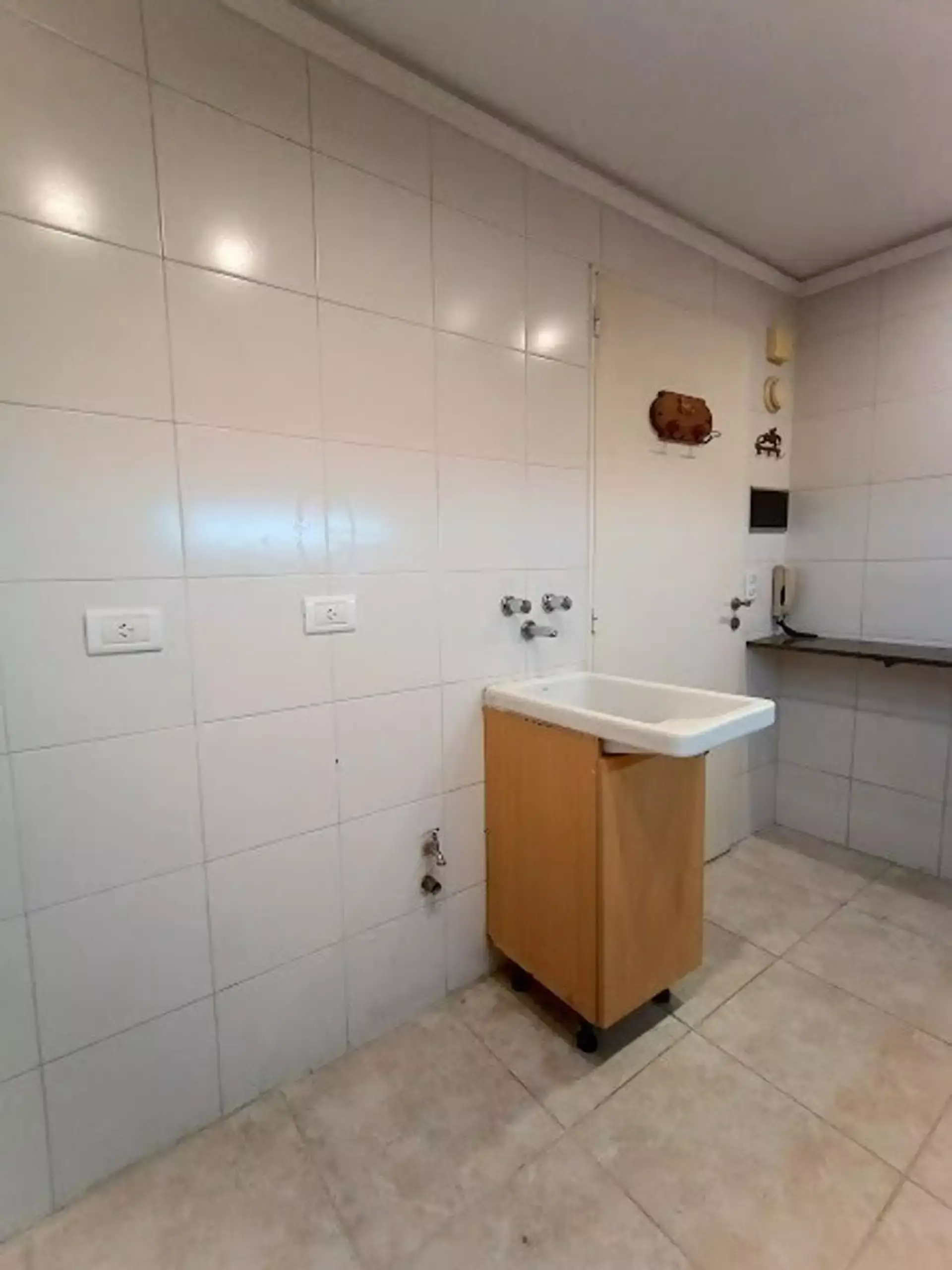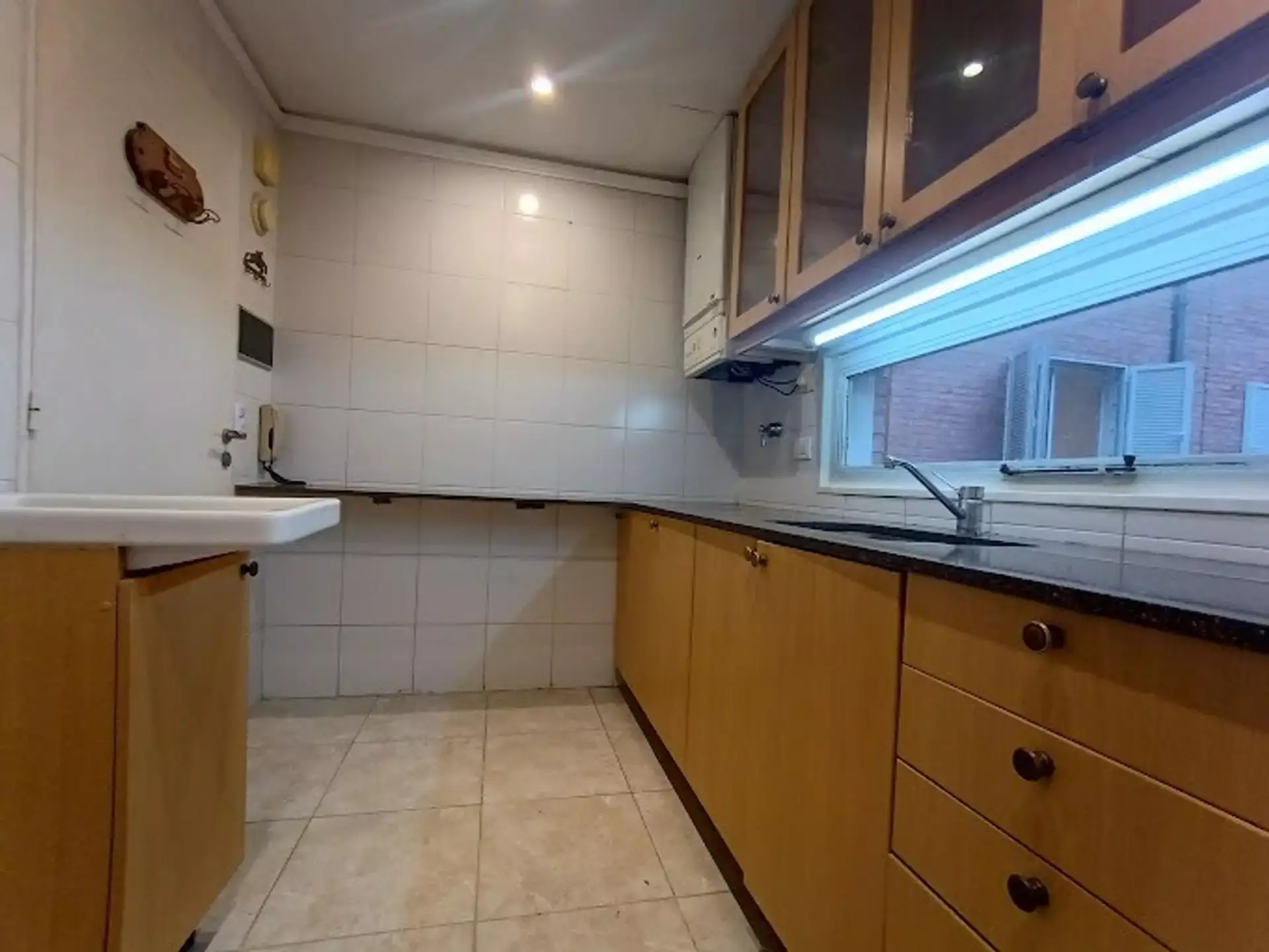 Separate kitchen with space for a washing machine.