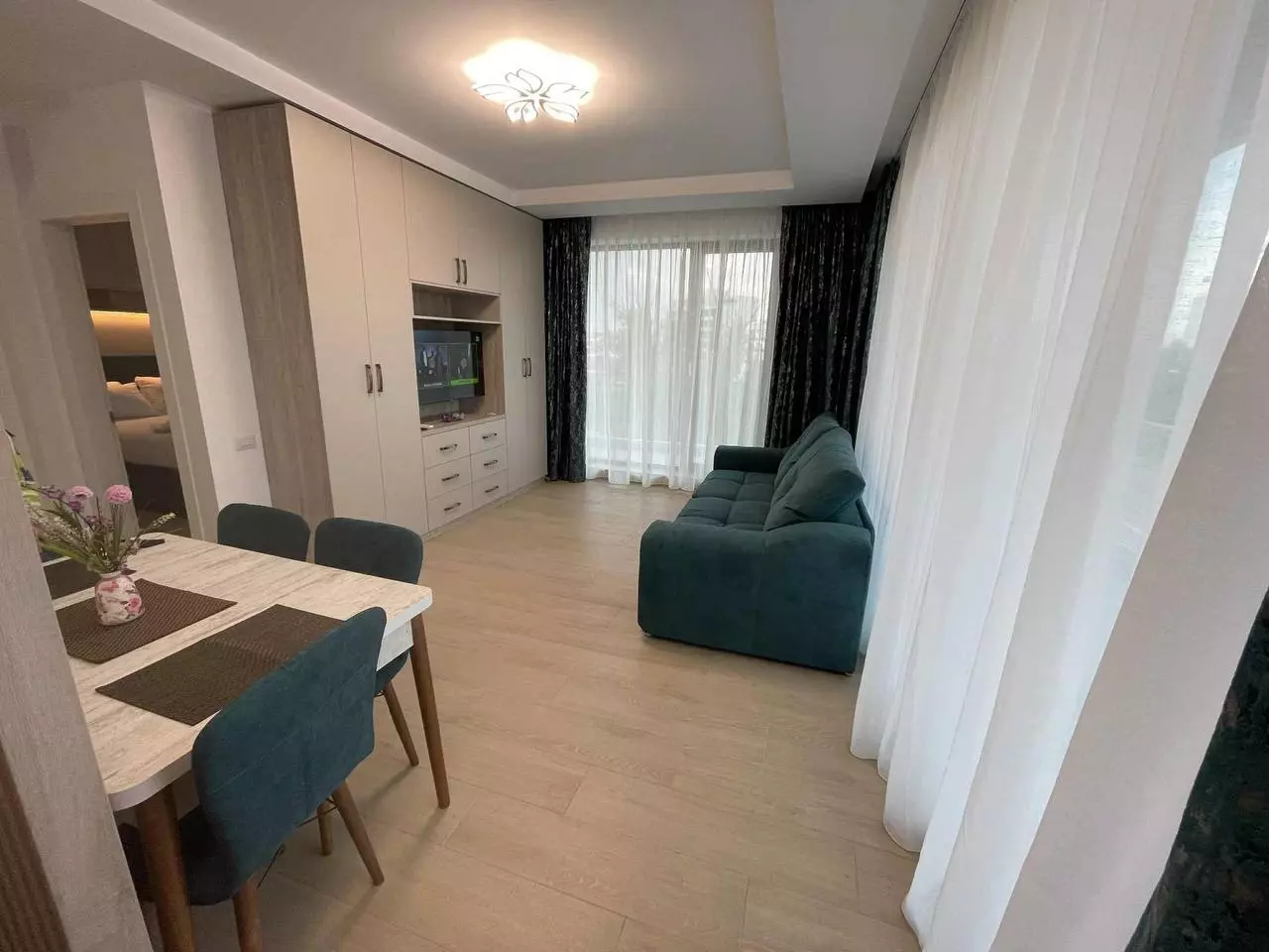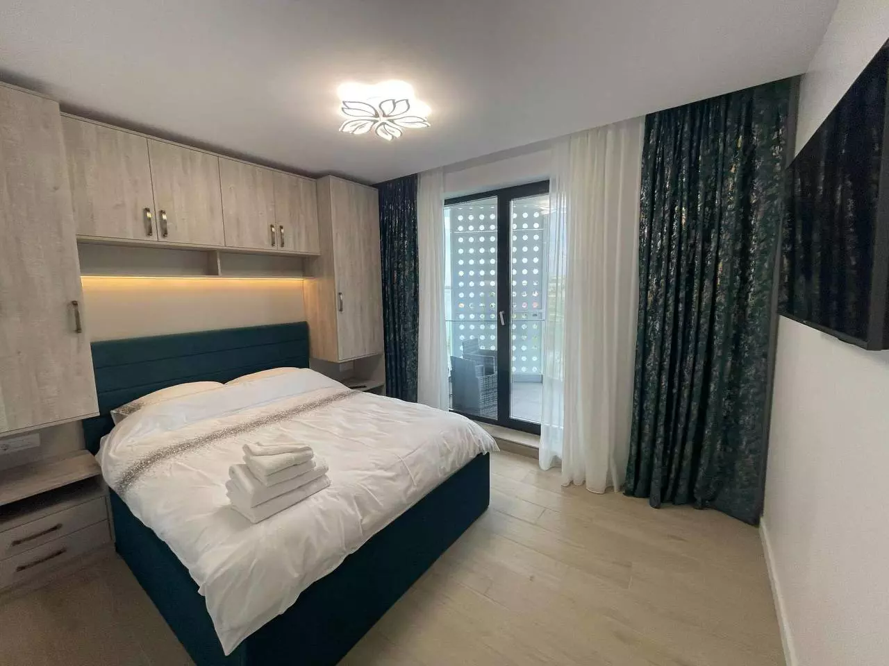 •Area: Mamaia, beginning of the spit, Residential Lake On •Terms: rent •Rental period: for a year •Movement date: available •Area: 45 m2 •Floor: 3 •Number of floors: 7 •Number of rooms: 2 •Equipment: TV, air conditioning, washing machine •Balcony/terrace: balcony •Bathroom: shower •Kitchen: oven, microwave, refrigerator •What's nearby: the sea is within walking distance, 5 minutes by car to the City Mall shopping center •Parking: common parking area, there is the possibility of parking on the street for 200 lei per year or renting a parking for 1480 € per year