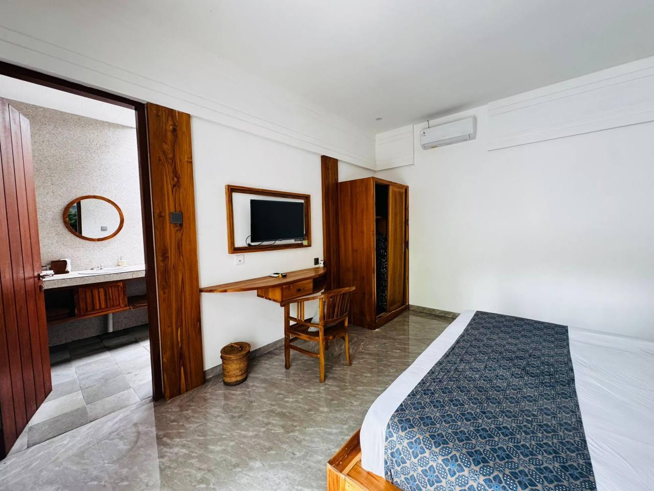 A brand-new one-bedroom villa is available for rent in the Singakerta Ubud area. The bedroom is equipped with air conditioning for ultimate comfort. The villa features a workspace, a swimming pool, and an open kitchen fully equipped with all necessary appliances. Accessible by car and bike. The rent includes electricity, cleaning services, linen changes, property maintenance, pool cleaning, and WiFi. The monthly rent is 17 million IDR.