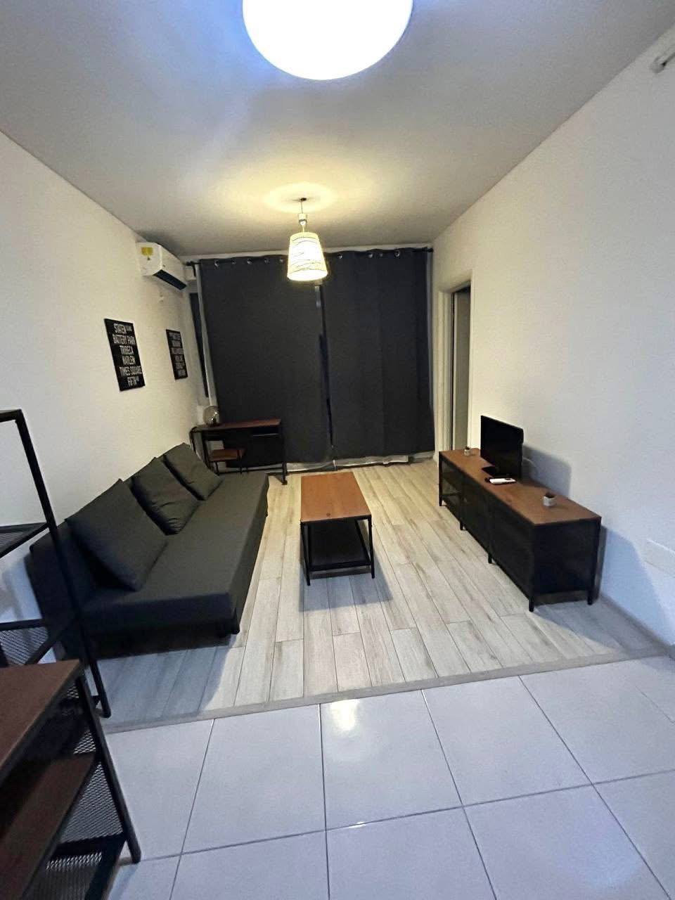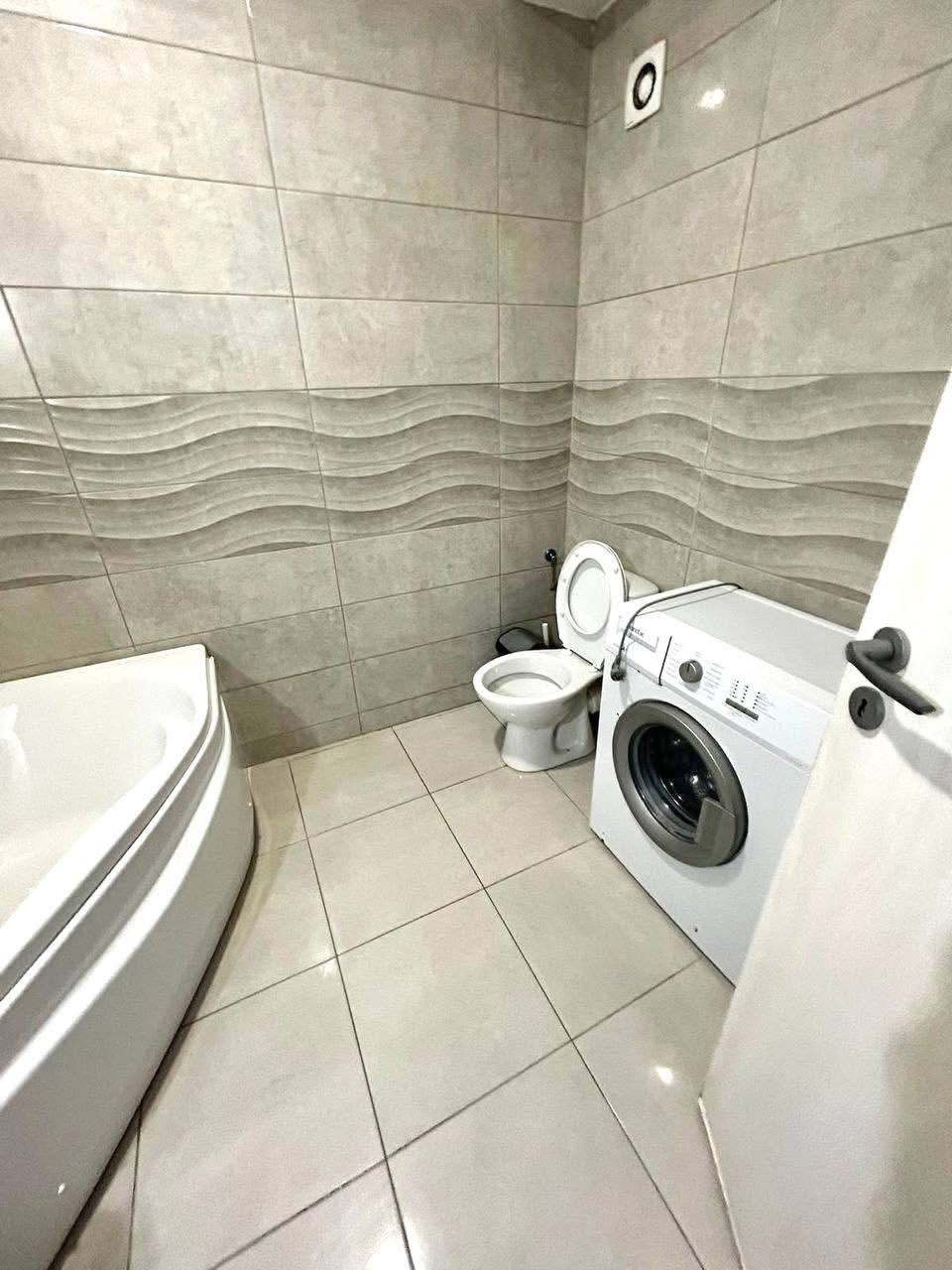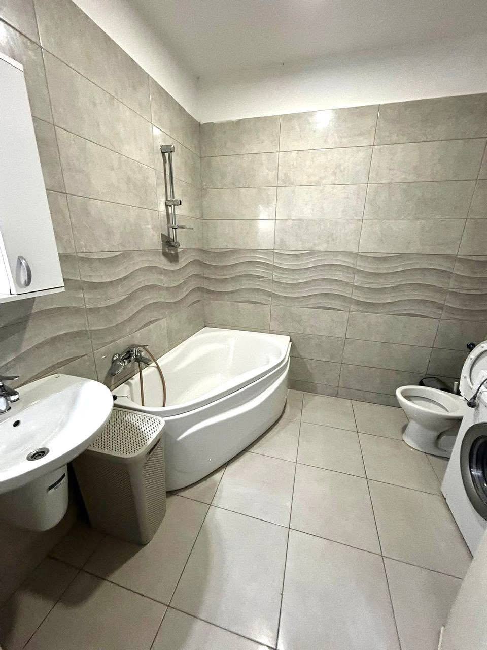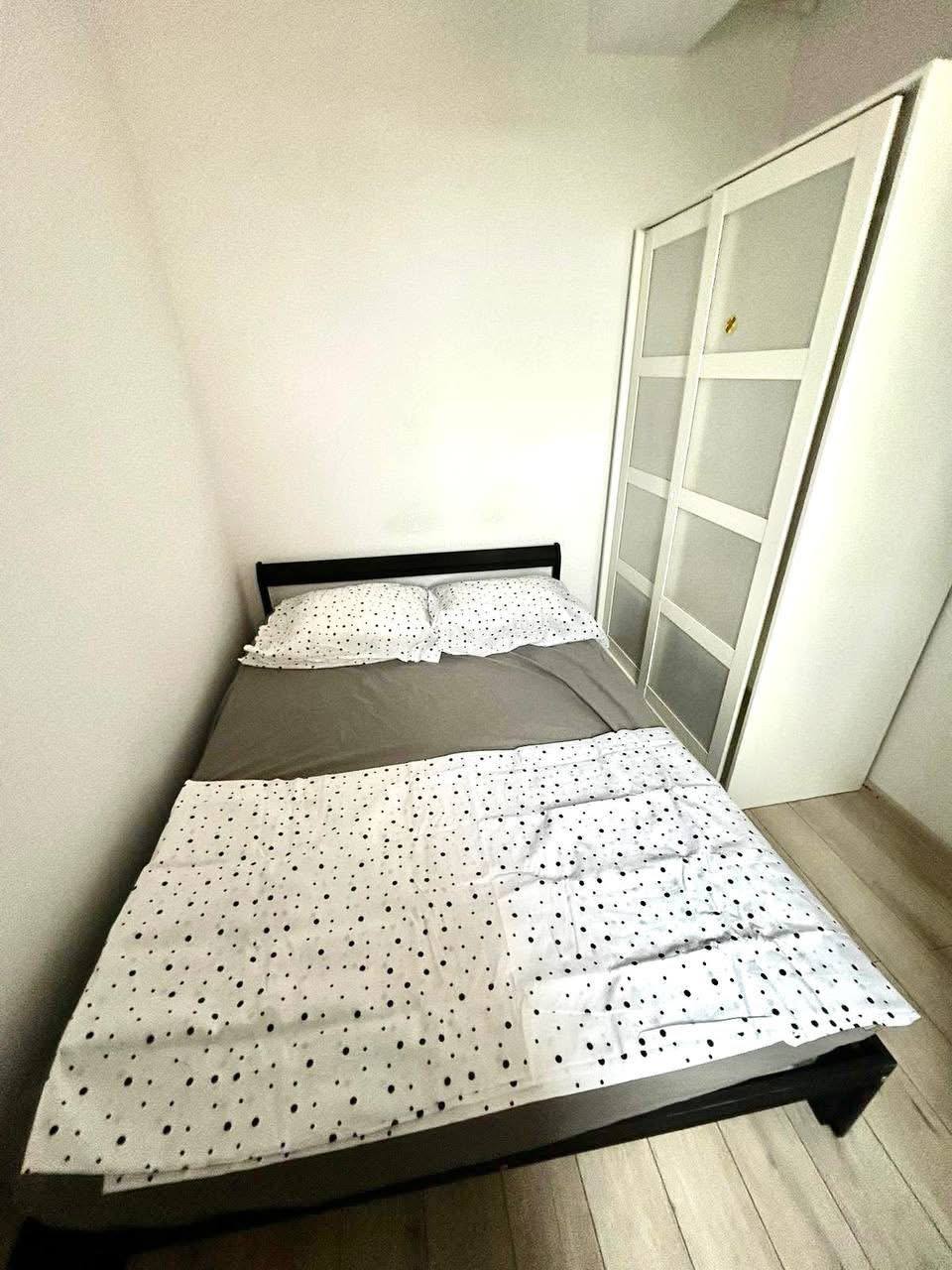 A small two-bedroom apartment is available for rent in Bucharest. The kitchen is on the balcony. The apartment is new. It has a double bed and a fold-out sofa. It includes air conditioning, TV, microwave, dishes, and bedding.