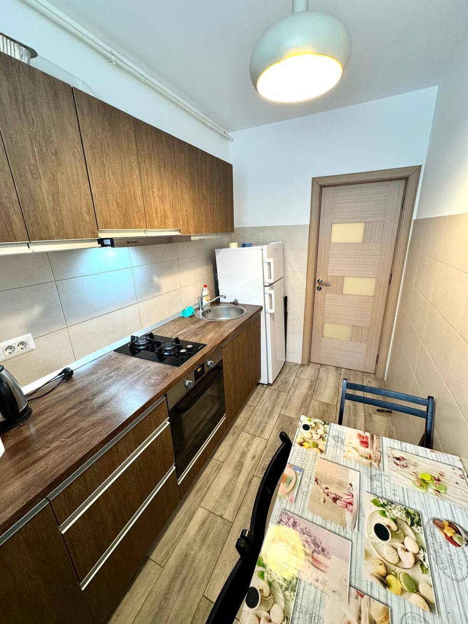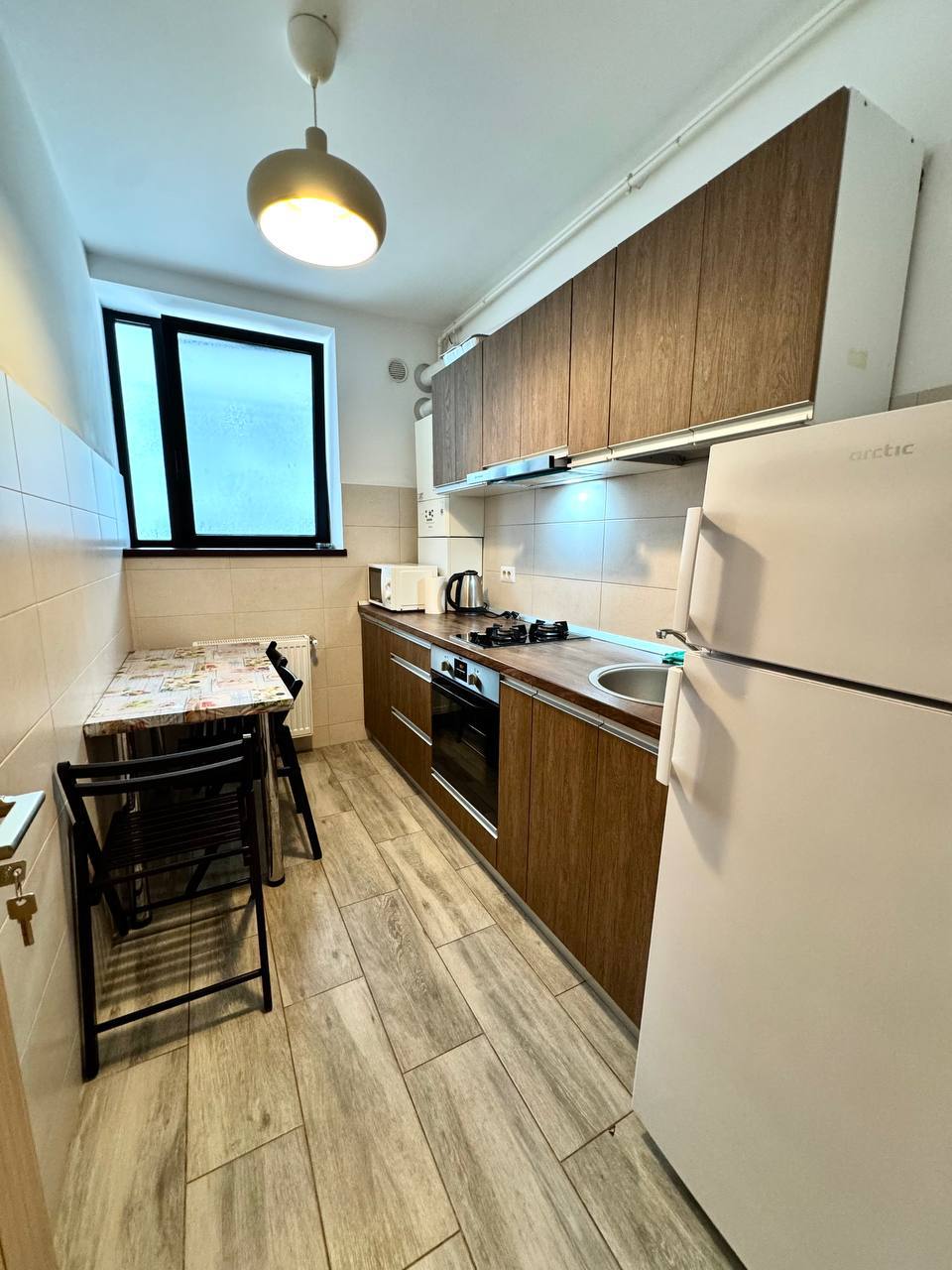 El apartamento está equipado con vajilla, ropa de cama, almohadas, microondas y hervidor de agua.