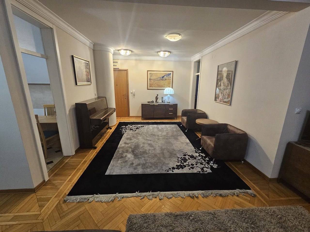 Amplio apartamento de tres habitaciones con dos terrazas en Nuevo Belgrado.