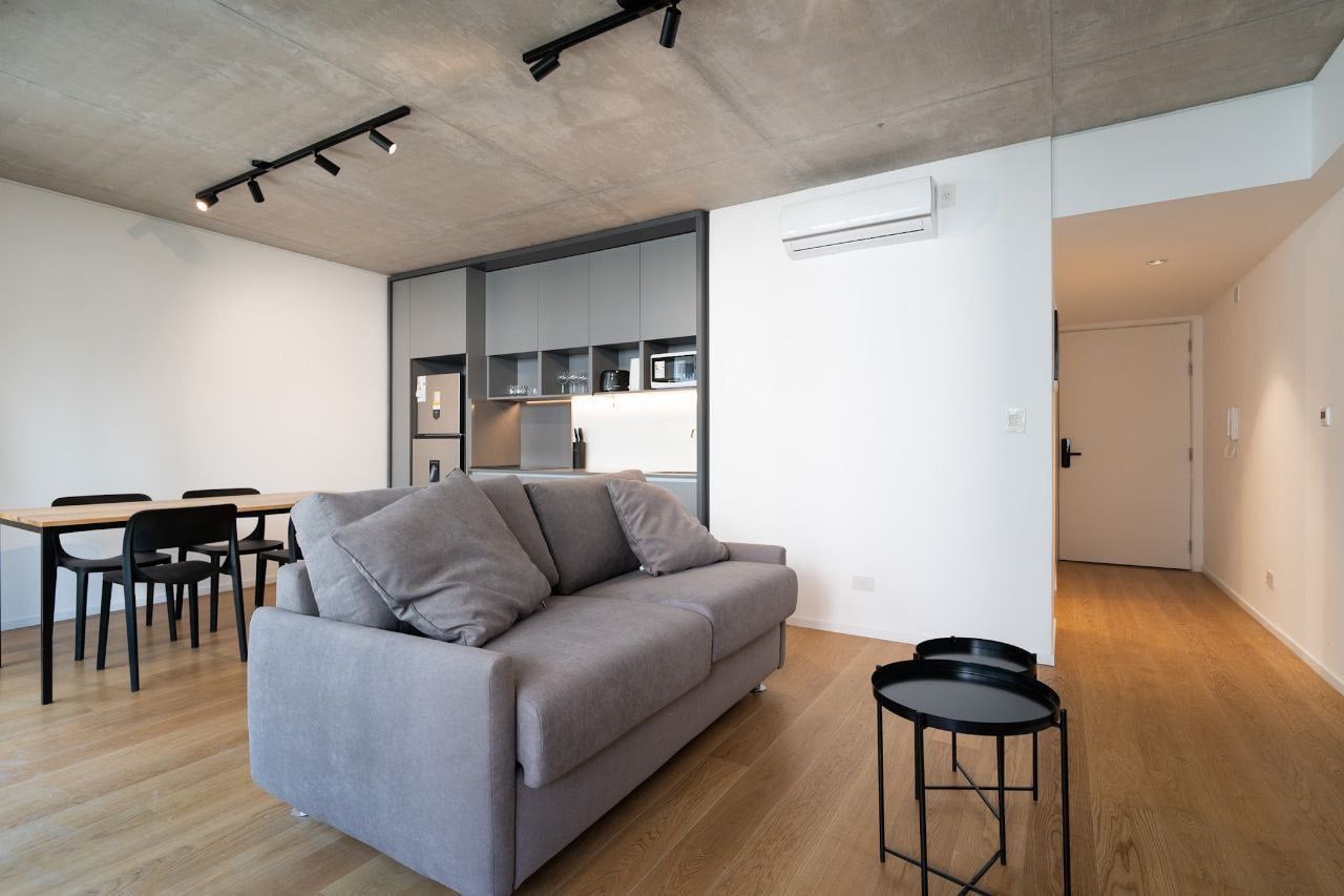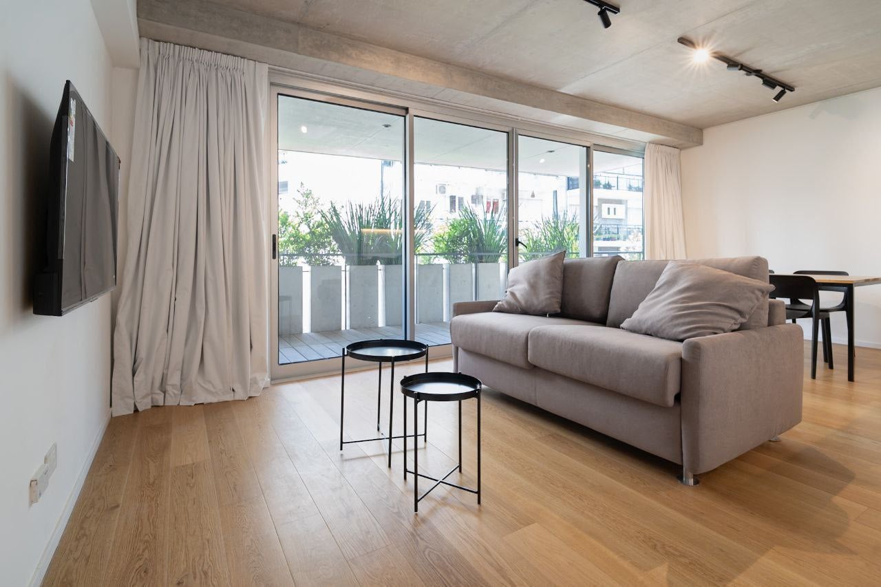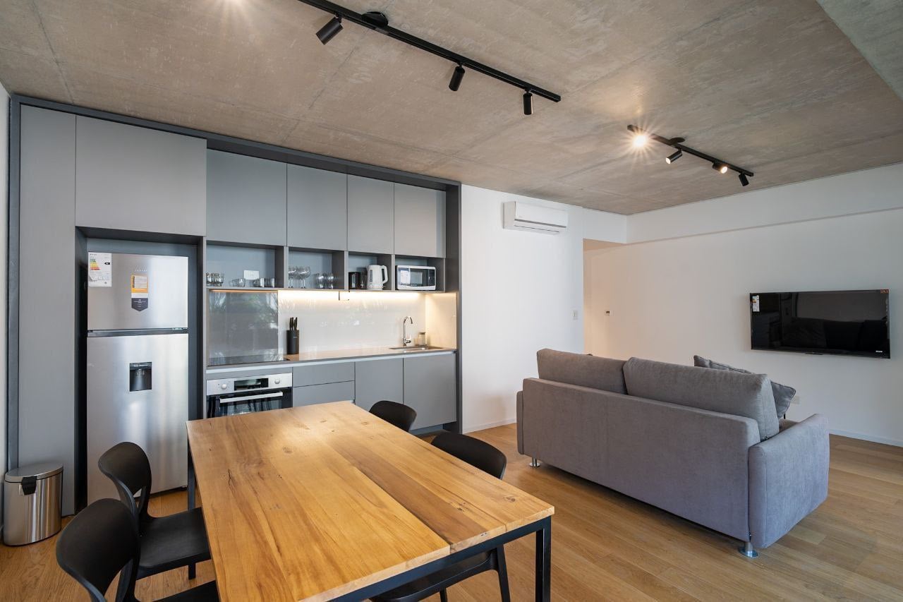 Moderno, tranquilo y luminoso departamento de dos dormitorios con balcón. El living cuenta con sofá cama, mesa, Smart TV, comedor y cocina totalmente equipada. Incluye lavadora.