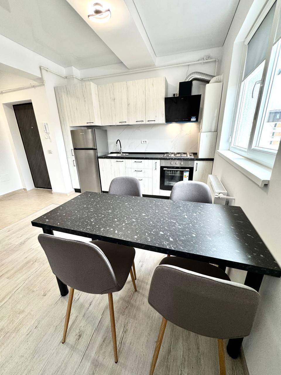 Se alquila un estudio a estrenar con cocina, habitación independiente y balcón. Llevamos cuatro meses viviendo allí desde el primer alquiler.