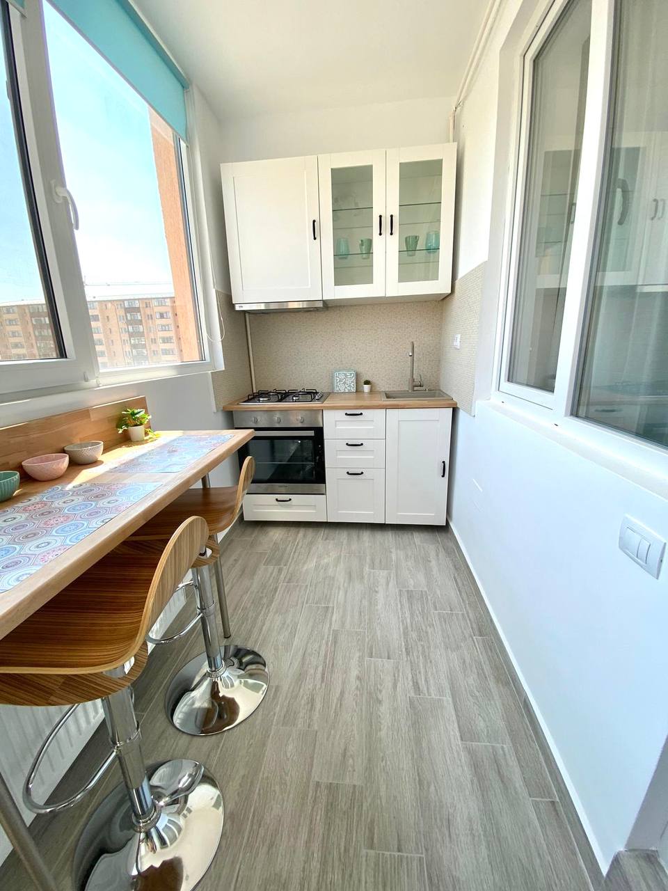 Se alquila un bonito apartamento de dos habitaciones con cocina en el balcón. Cuenta con una cama doble (160 x 2 metros) y un sofá cama doble nuevo. El apartamento está completamente amueblado. Dispone de dos Smart TV, wifi, aire acondicionado, vajilla y ropa de cama.