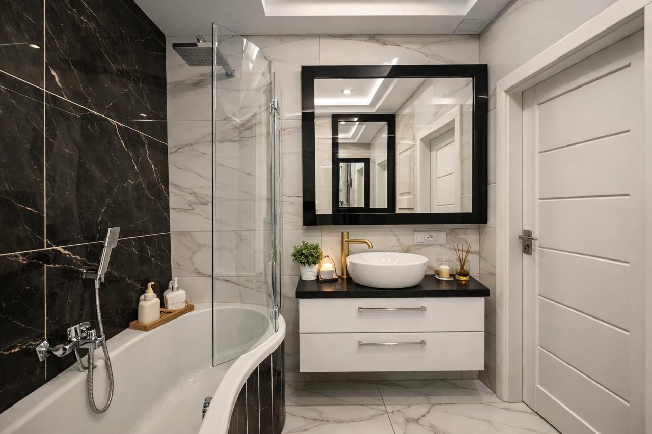 – ванная с душем, умывальником и WC