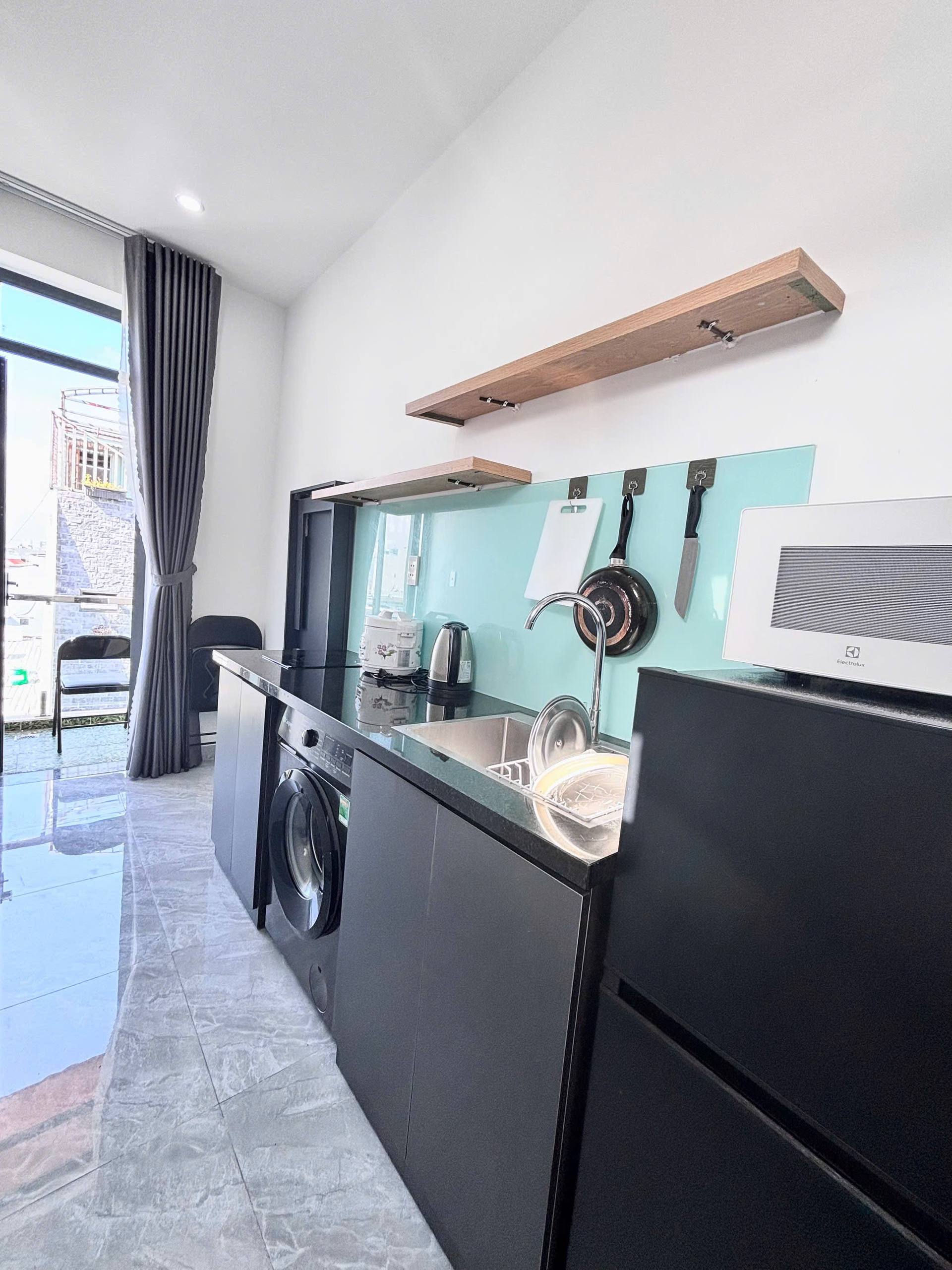 El apartamento es acogedor, está amueblado y cuenta con balcón, así como con electrodomésticos esenciales incluyendo lavadora, aire acondicionado, refrigerador y más.