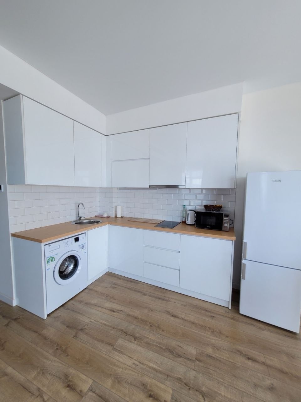 — Cocina pequeña, hervidor, microondas