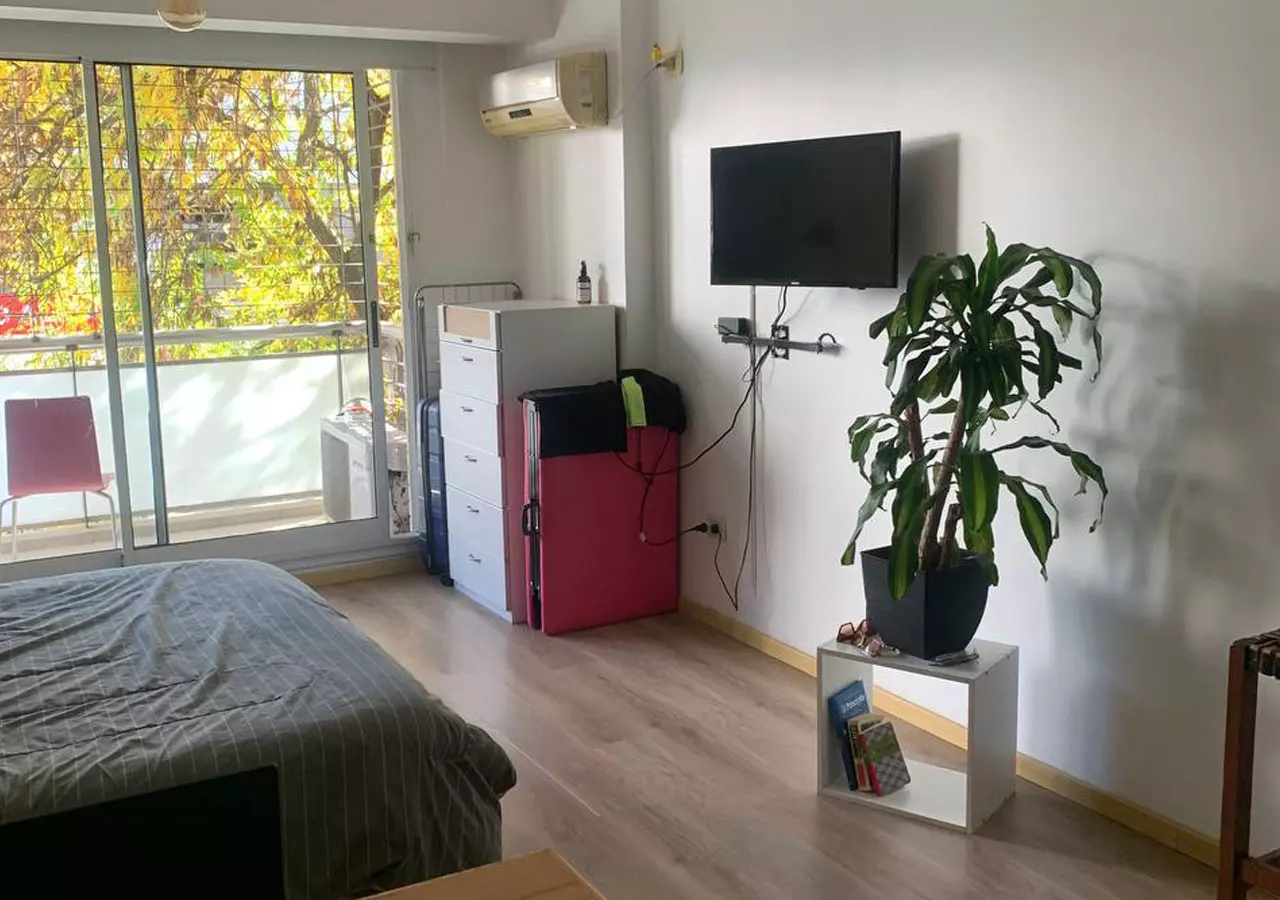 Studio de 36 m² situé à Villa Crespo, dans un immeuble moderne avec services complets : piscine, salle de sport, salon commun (SUM) et laverie gratuite.