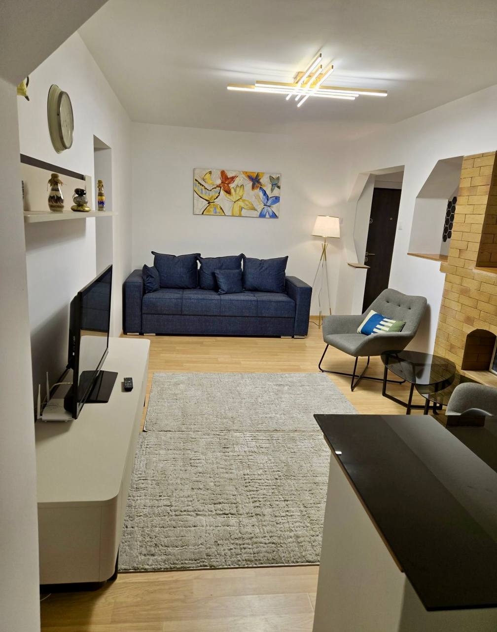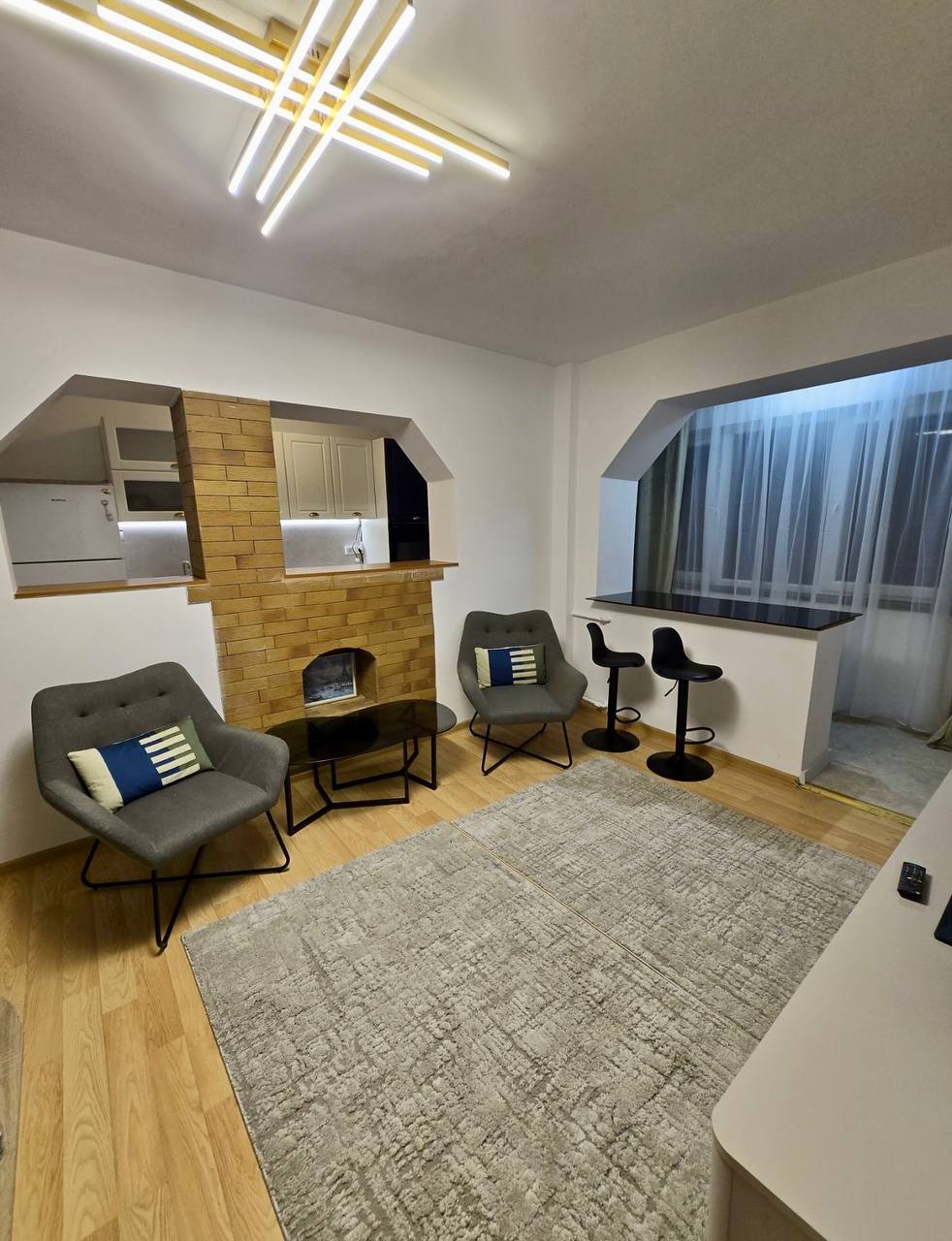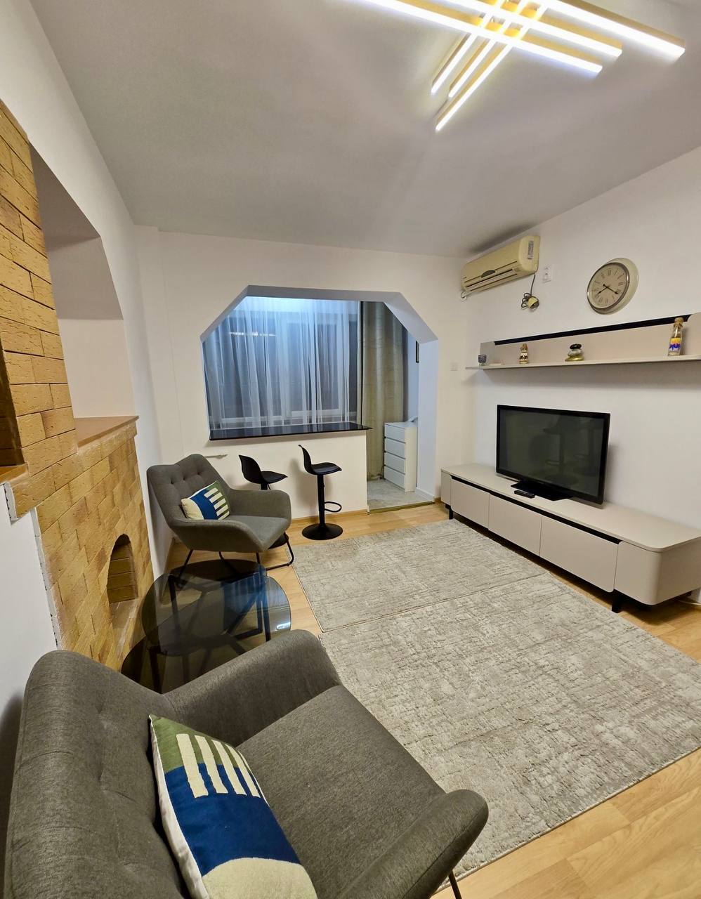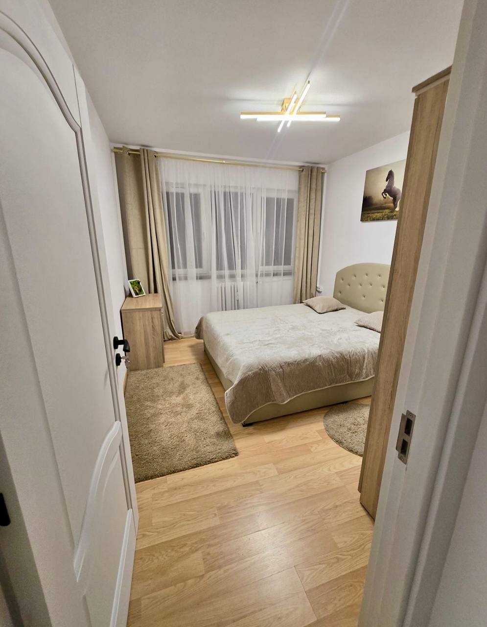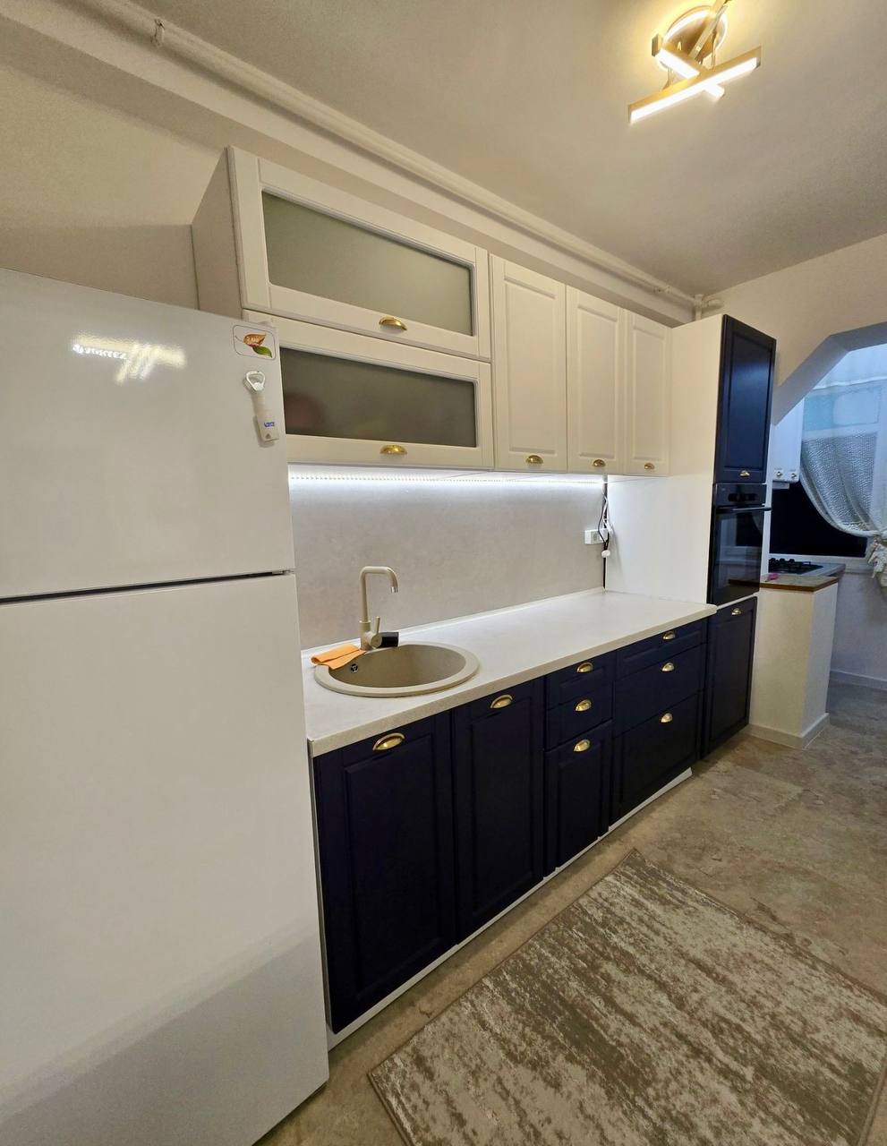 Appartement de 2 pièces à louer dans le quartier de Krangași, en face d'Auchan, juste à côté des arrêts de bus 162 et 163, et à 10 minutes à pied du métro et du marché de Krangași. Entièrement rénové, l'appartement est meublé et équipé d'électroménagers neufs. Situé au deuxième étage d'un immeuble de quatre étages, il bénéficie d'une isolation intérieure et extérieure refaite à neuf, d'une plomberie neuve et de salles de bains neuves. L'appartement comprend un micro-ondes, un réfrigérateur, un four, un sèche-linge et un lave-linge neufs. Le salon est meublé d'un canapé-lit. À proximité, vous trouverez une école maternelle, un collège et le lycée Marin Preda, ainsi que le parc Giulesti à 150 mètres.