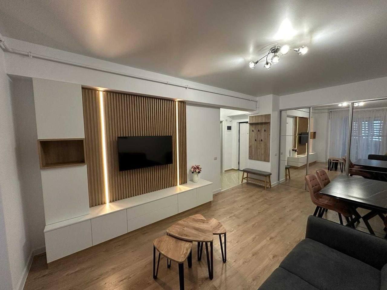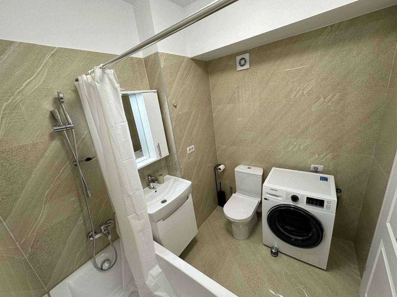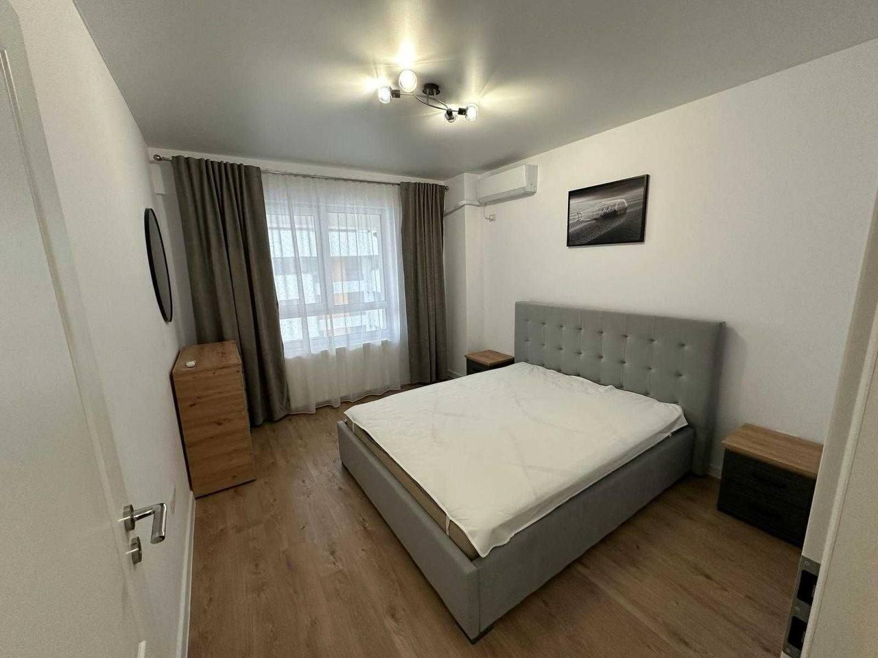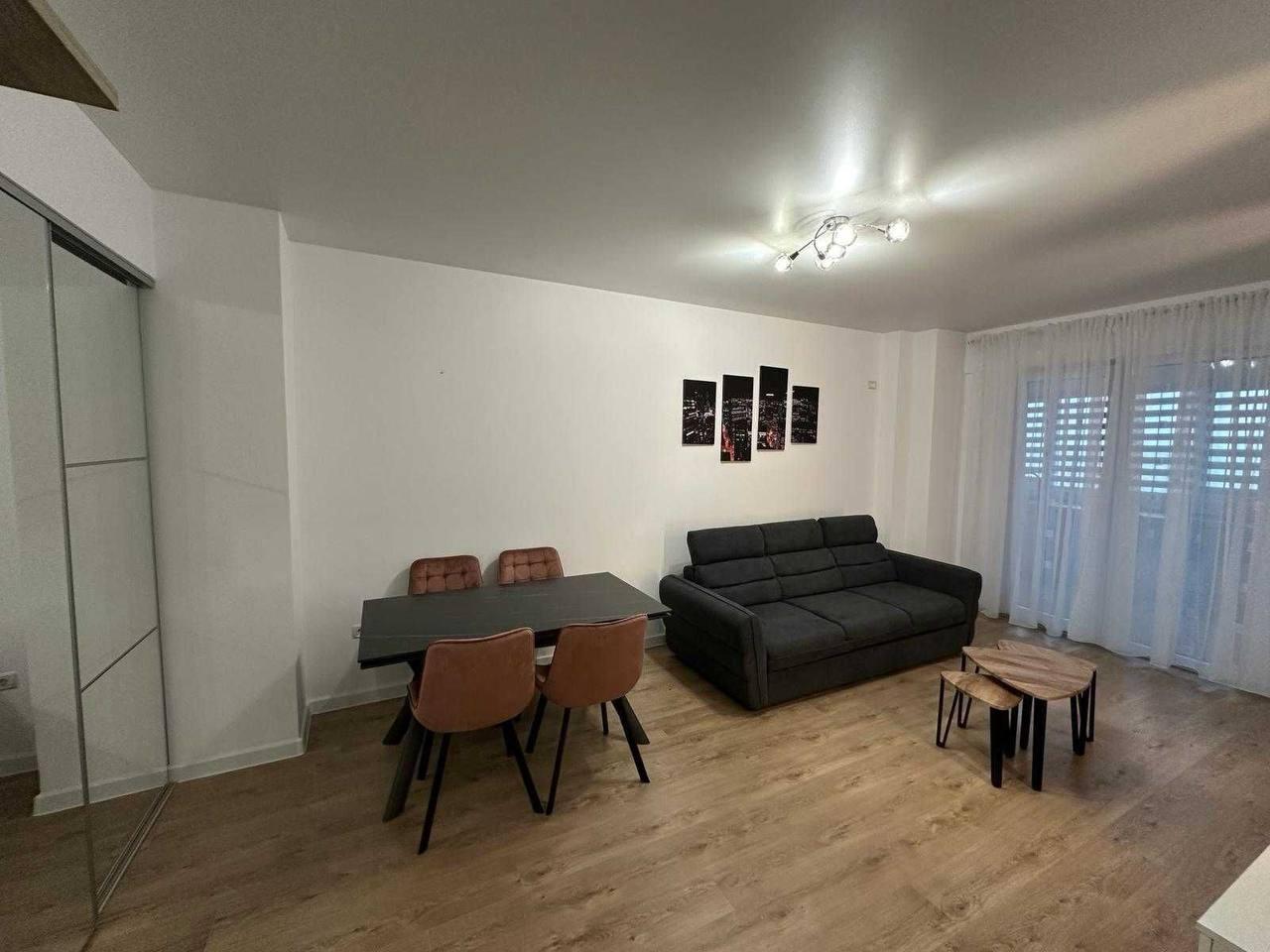 A two-room apartment is available for rent on the 10th floor, covering 55 m² in Bucharest. The apartment is equipped with brand-new Samsung appliances, including a washing machine, dryer, refrigerator, oven, microwave, and TV. Pet-free tenancy is mandatory. Minimum rental terms: 6 months. The rent is €600 per month for a one-year lease or €675 per month for a six-month lease. An additional deposit and commission of €325 apply, along with utility payments.