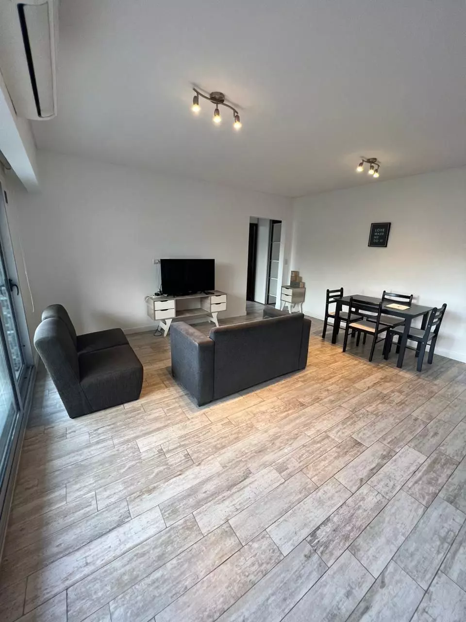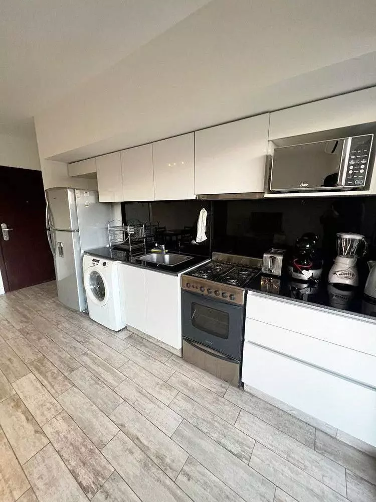 El salón cuenta con sofá, mesa, Smart TV, aire acondicionado, zona de comedor. La cocina está equipada con todo lo necesario, hay LAVADORA.