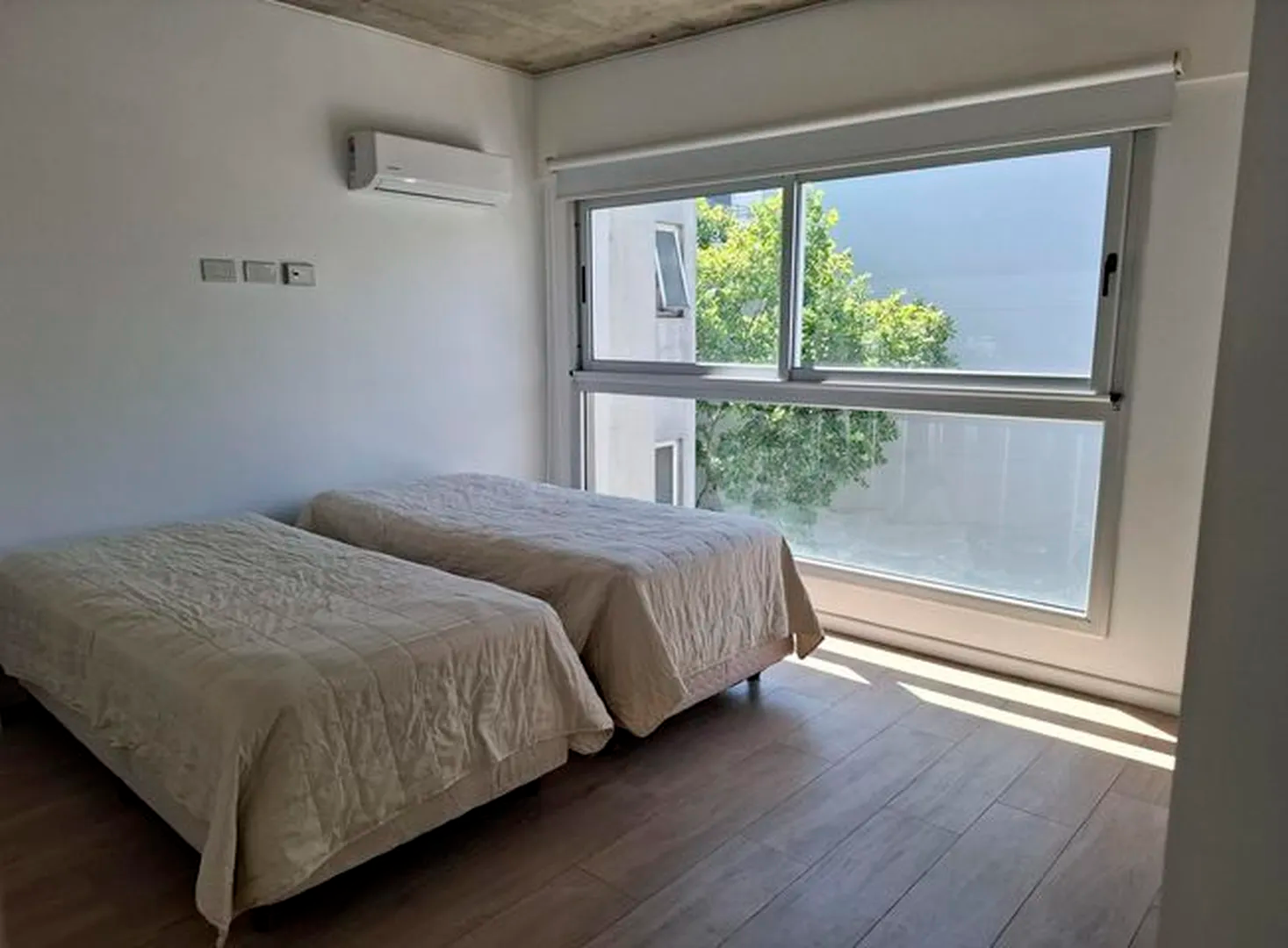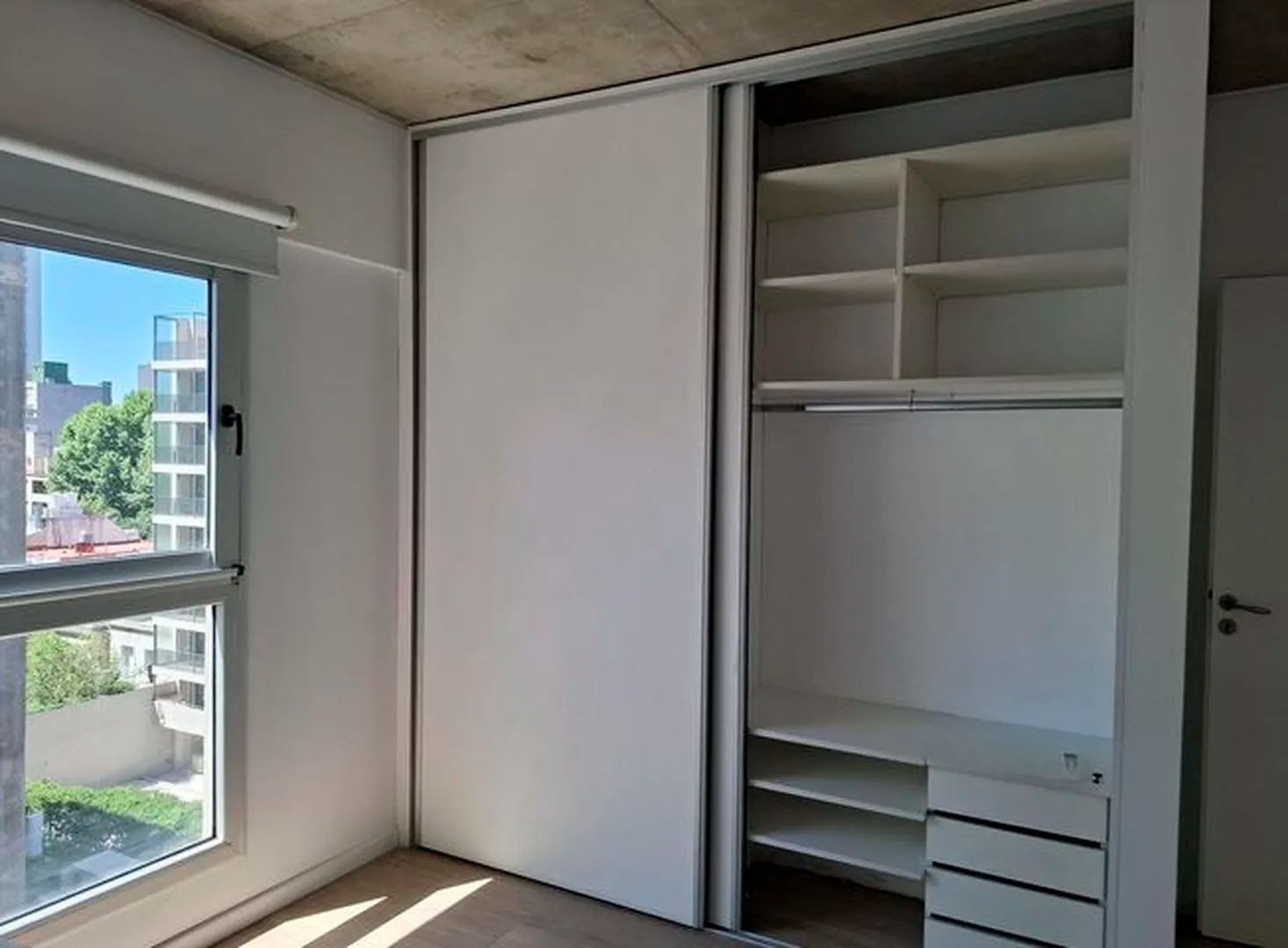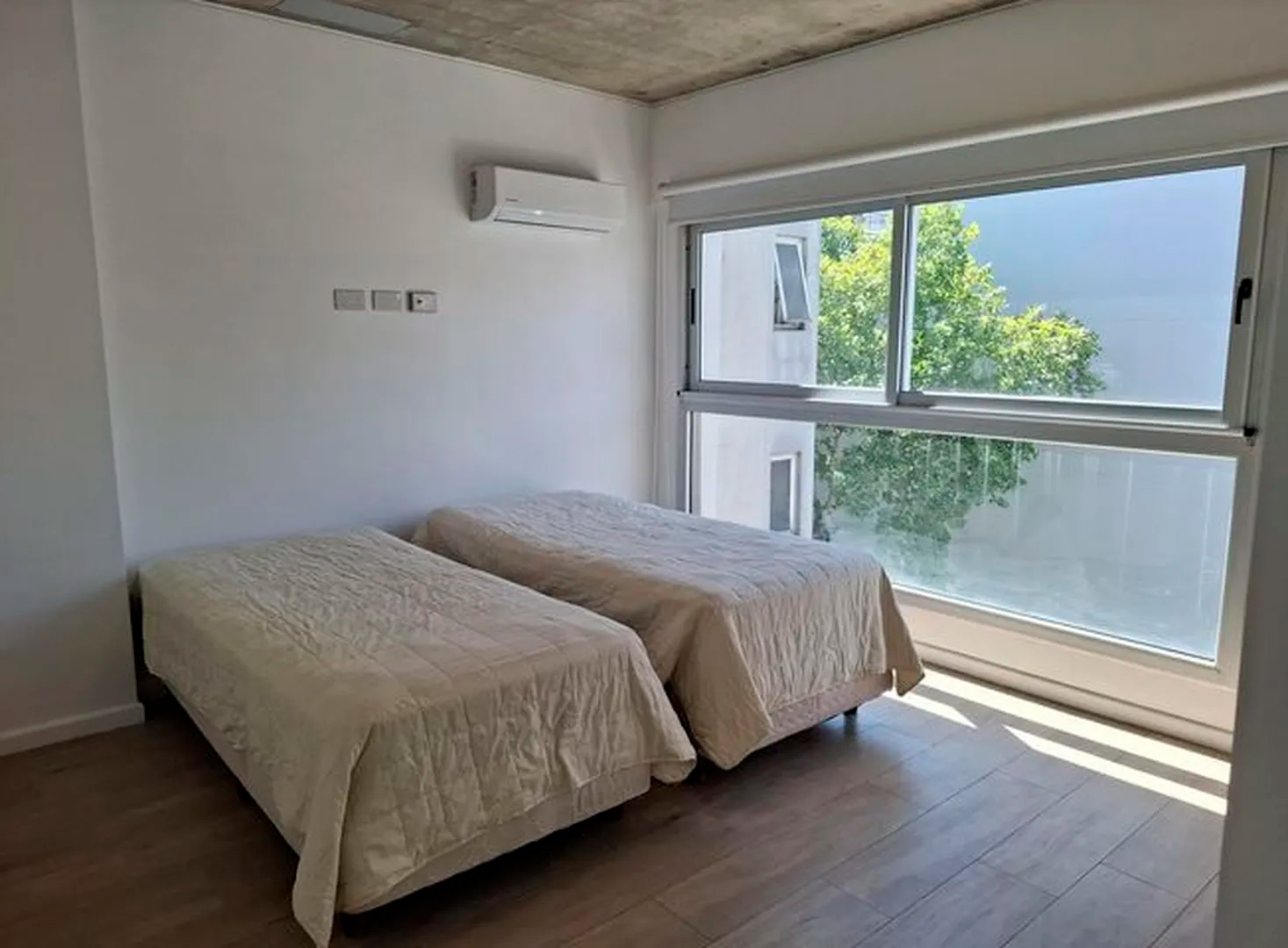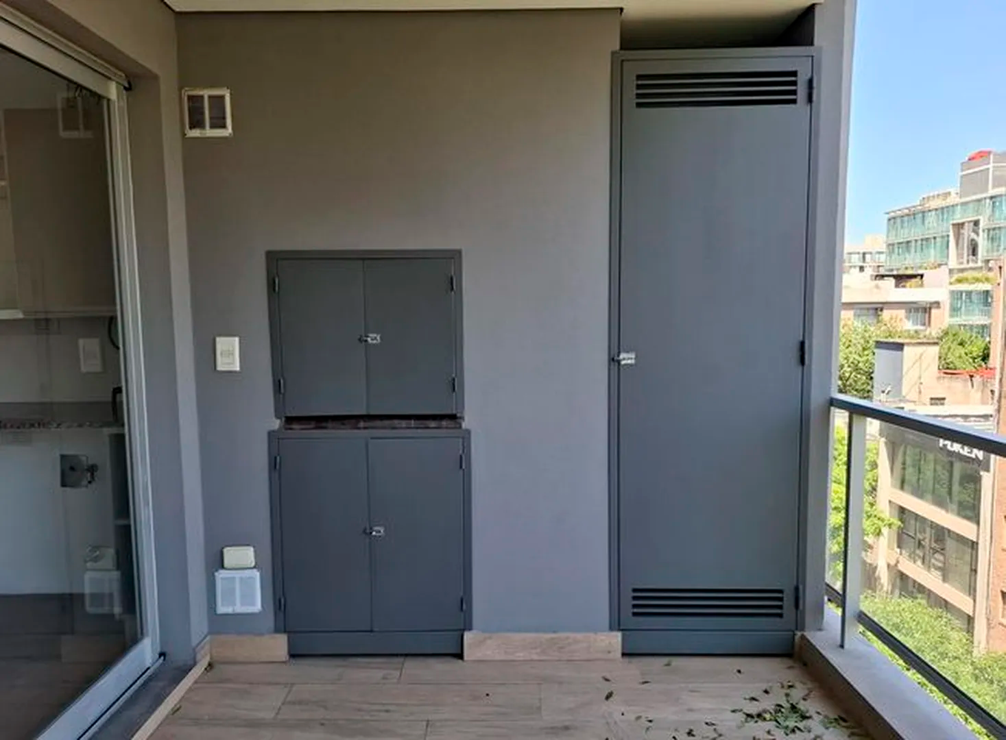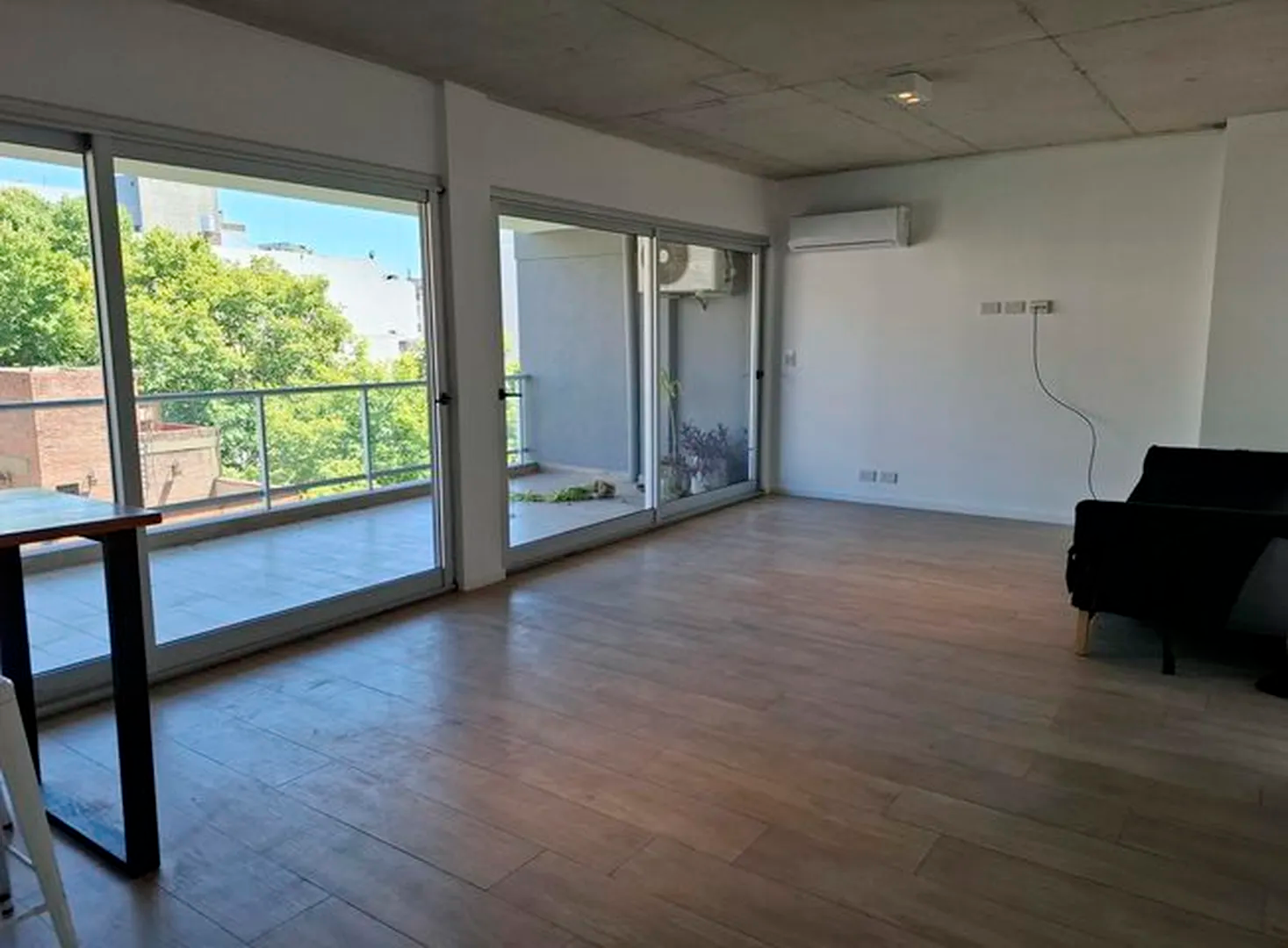 Amplio piso de 3 ambientes 3 años de antigüedad al frente. Vista abierta, muy luminoso, con 2 balcones terraza y parrilla propia. 2 dormitorios, uno en suite con vestidor, 2 baños completos con bañera. Cocina abierta con muebles completos, espacio y conexion para lavarropas y lavavajillas, Horno elect. y anafe a gas Longvie, placards con interiores y frente integral, carpintería de aluminio anodizado natural A30 new con vidrio laminado 3+3, pisos de porcelanato simil madera marca ILVA, 3 equipos de aire acondicionado frío calor, agua caliente individual (calefón Orbis), grifería monocomando FV, bacha Johnson, sanitarios Ferrum. Excelentes terminaciones. Servicios individuales. Terraza común. solarium con ducha. Portero visor con pantalla. Cámaras de seguridad en todos los pisos. Alarma. Artefactos de iluminación en todos los ambientes excepto living.