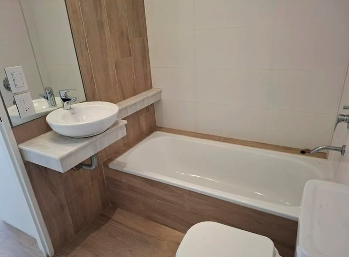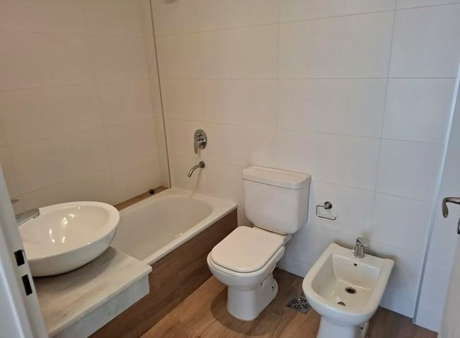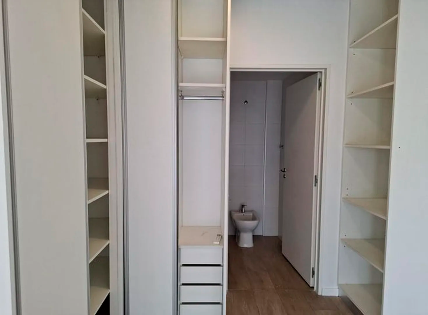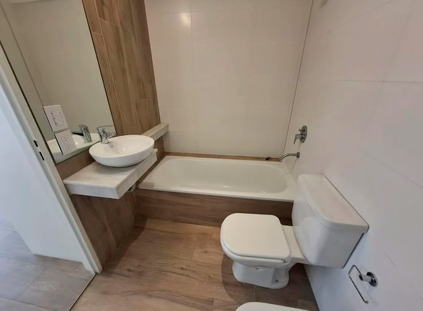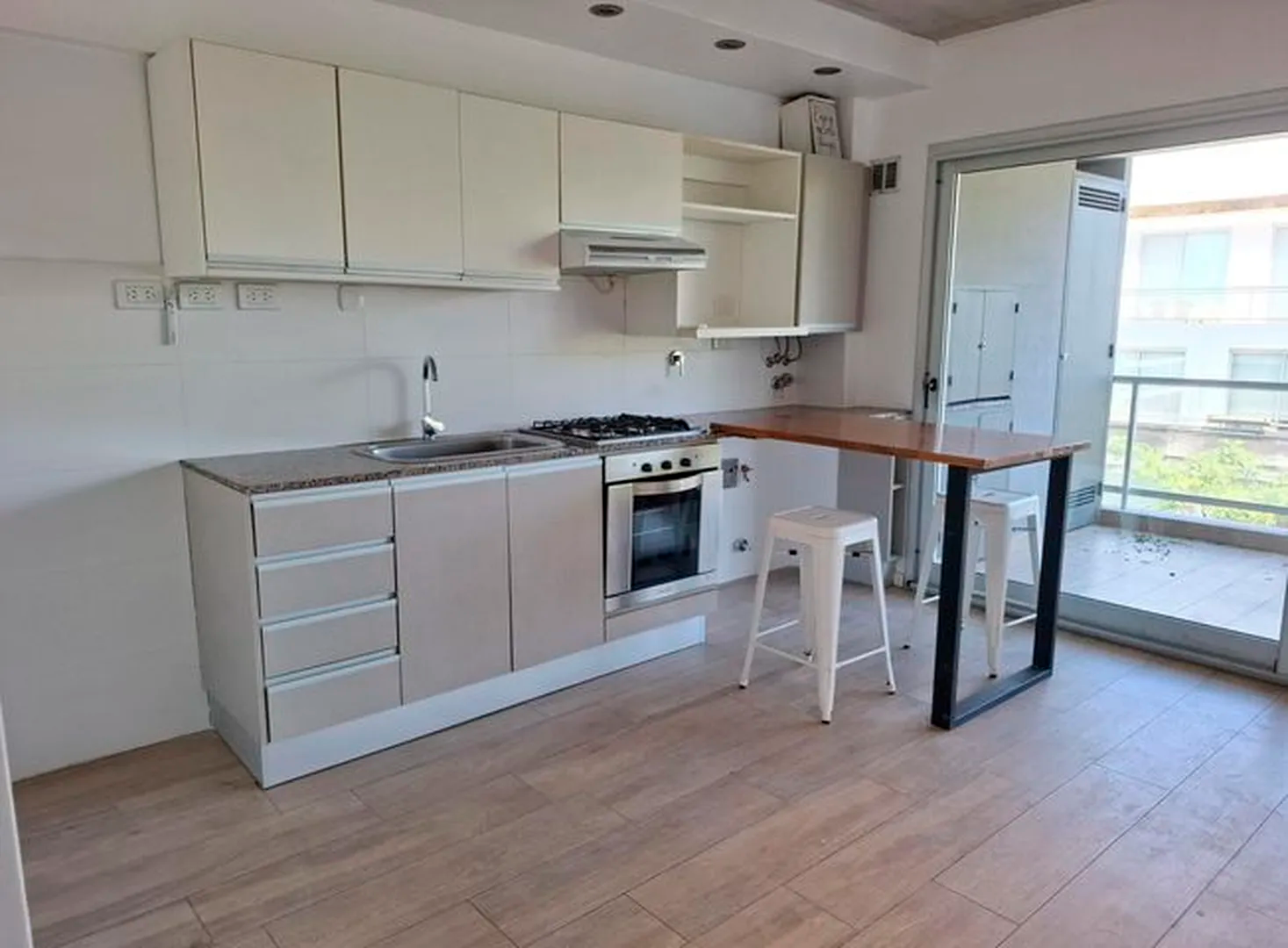 Amplio piso de 3 ambientes 3 años de antigüedad al frente. Vista abierta, muy luminoso, con 2 balcones terraza y parrilla propia. 2 dormitorios, uno en suite con vestidor, 2 baños completos con bañera. Cocina abierta con muebles completos, espacio y conexion para lavarropas y lavavajillas, Horno elect. y anafe a gas Longvie, placards con interiores y frente integral, carpintería de aluminio anodizado natural A30 new con vidrio laminado 3+3, pisos de porcelanato simil madera marca ILVA, 3 equipos de aire acondicionado frío calor, agua caliente individual (calefón Orbis), grifería monocomando FV, bacha Johnson, sanitarios Ferrum. Excelentes terminaciones. Servicios individuales. Terraza común. solarium con ducha. Portero visor con pantalla. Cámaras de seguridad en todos los pisos. Alarma. Artefactos de iluminación en todos los ambientes excepto living.