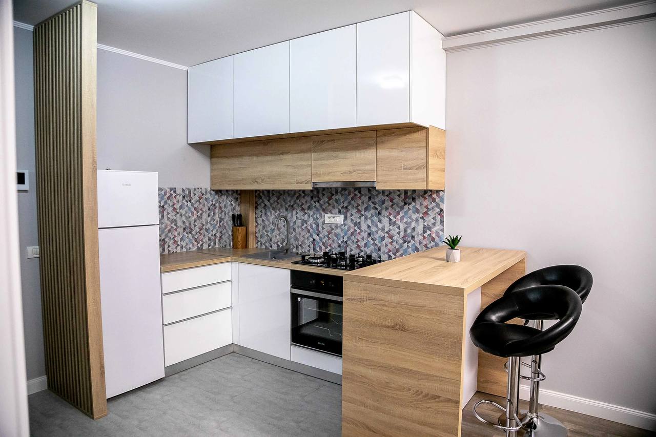 •Кухня: плита, духовой шкаф, холодильник