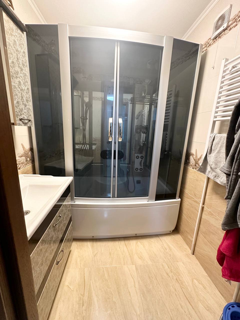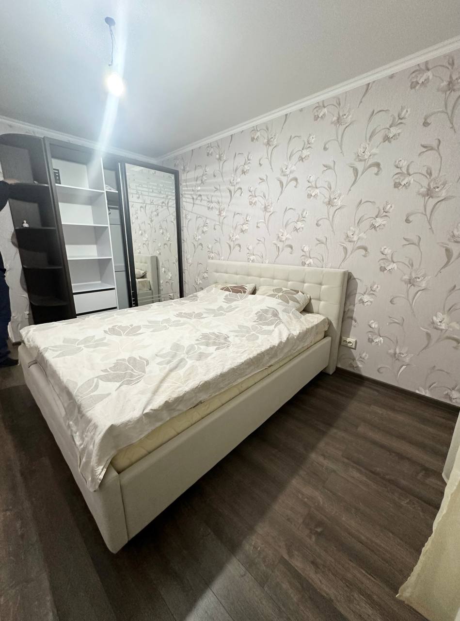 54 м2. Евроремонт. Квартира меблирована полностью. Есть кондиционер, ТВ, холодильник, духовка, стиральная машина-автомат. Есть интернет. Посуда. Постель.