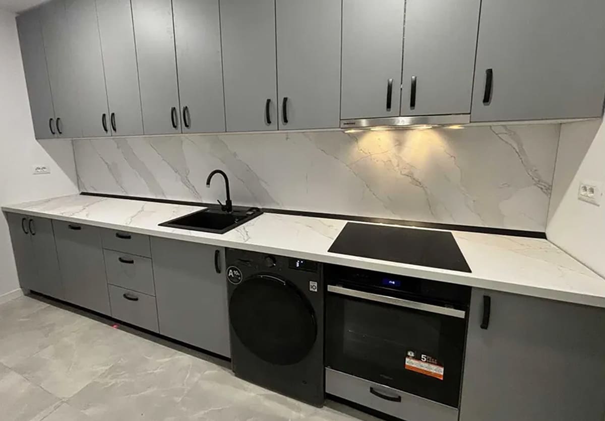 Полностью оборудованная и укомплектованная кухня (система вентиляции и кондиционирования воздуха, духовой шкаф, варочная панель).