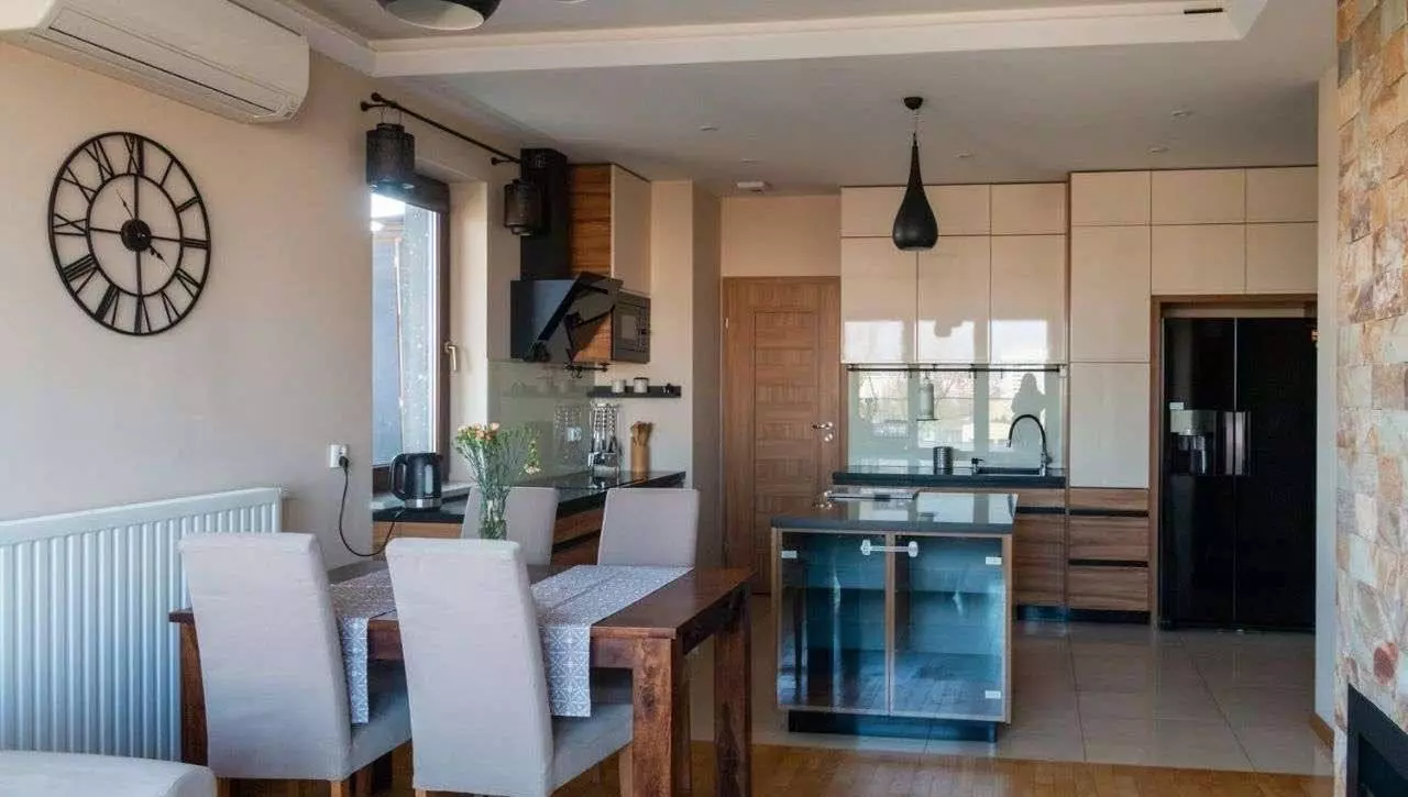 Оснащение: двудверный холодильник с ледогенератором, посудомоечная машина, варочная панель, духовка, микроволновка, стиральная машина, телевизор, кондиционер, мебель из экзотического дерева, биокамин, кровати (двуспальная и односпальная), комоды, письменный стол.
