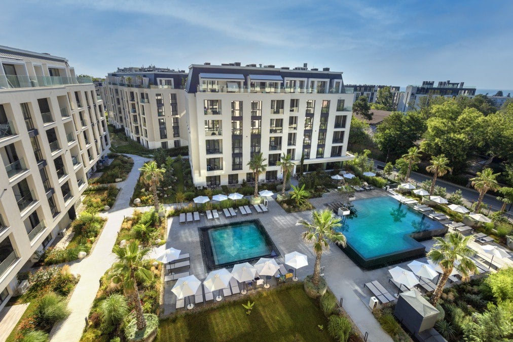 Этот вариант для тех, кто ценит комфорт, зелень, бассейн и удобный выезд к пляжу.
