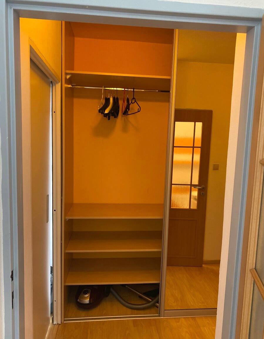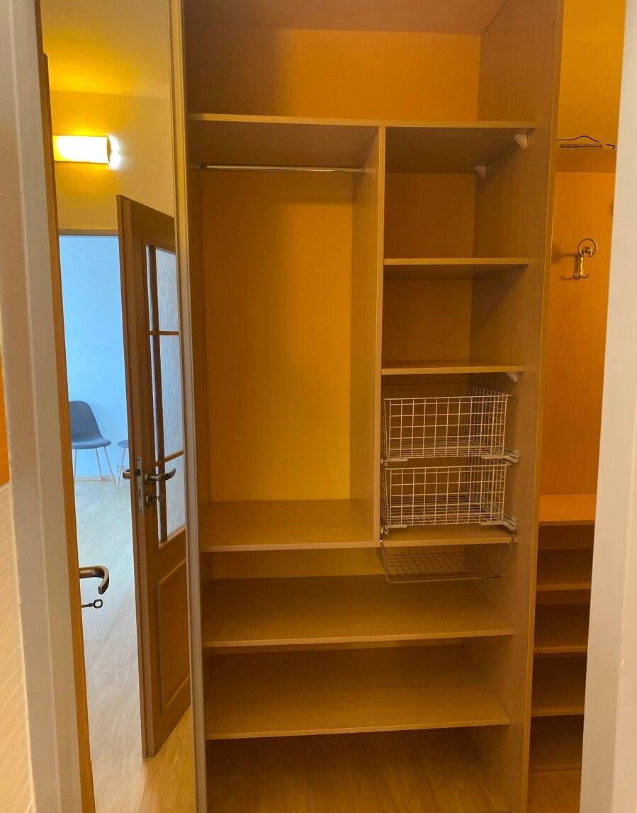 • В прихожей есть встроенный шкаф и обувница.
