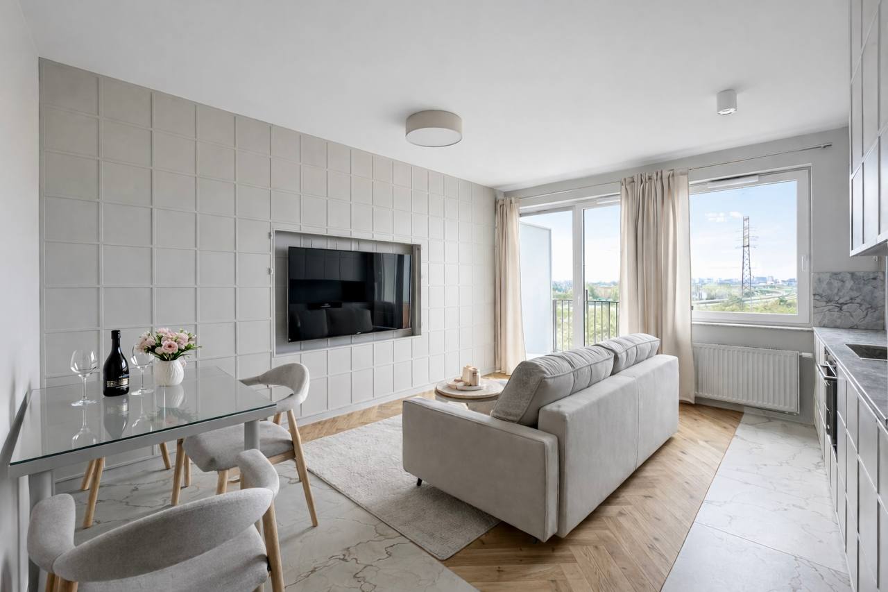 📍 Локация: Зеленый и спокойный район Mokotów (Czerniaków). Рядом парки и зоны отдыха: Łazienki Królewskie, Jeziorko Czerniakowskie. Остановка автобуса — 2 минут пешком, быстрый доступ к центру.